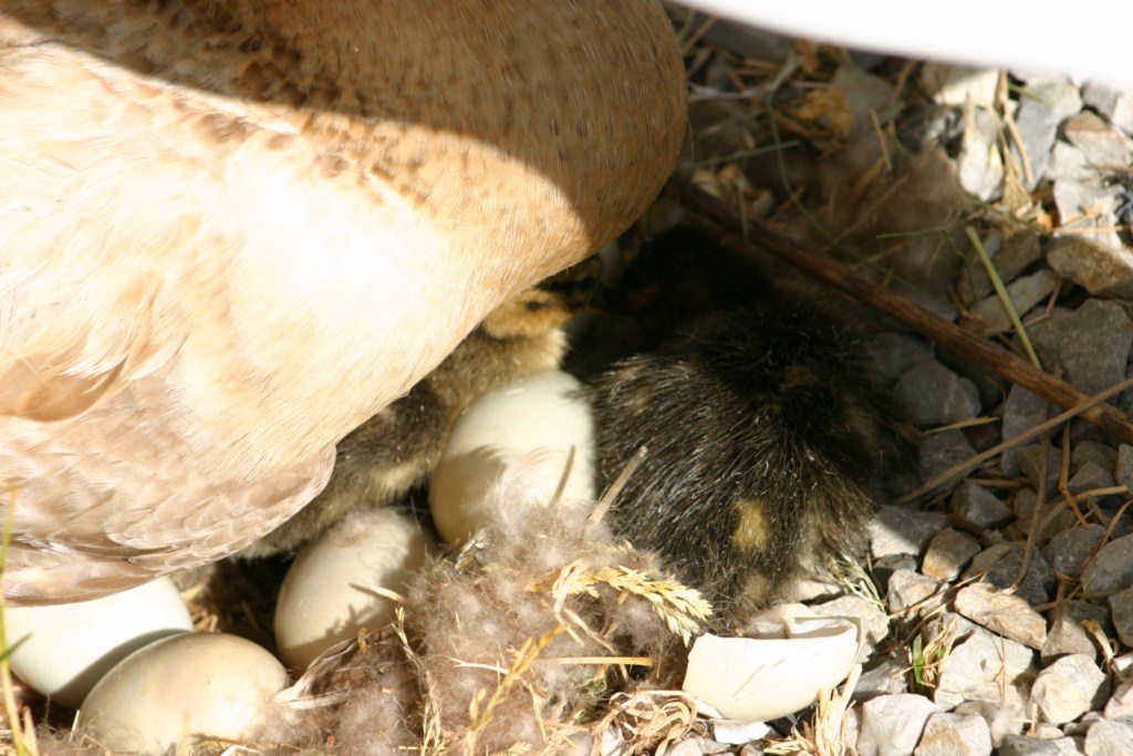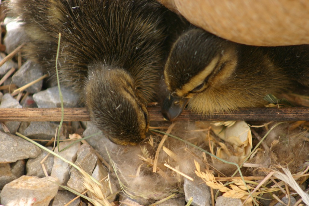 One of the new hatched from mum No. 2. You can still see the shell this one emerged from. So this little bundle of fluff is but a few minutes old.