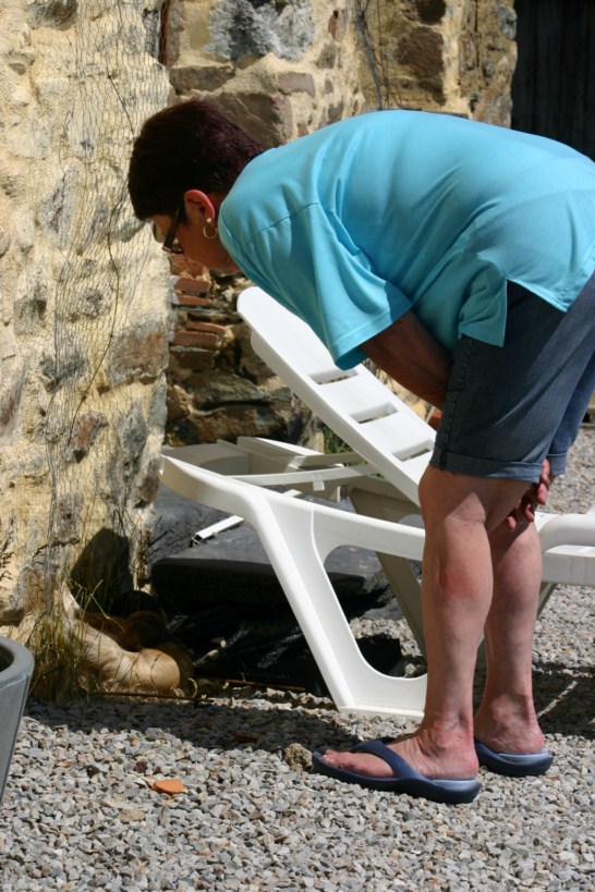 Mum inspecting mum. The lounger has been put there to keep the sun off.