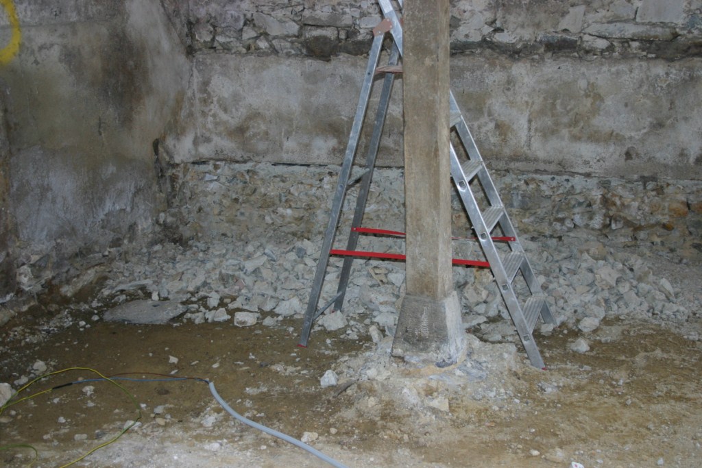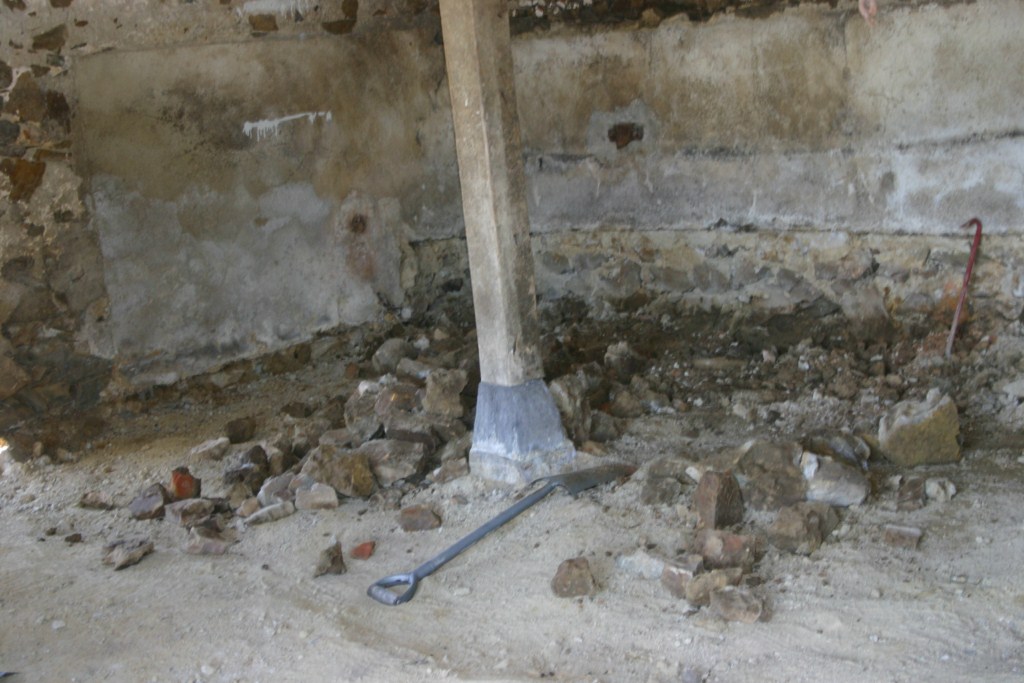 The last little bit of plinth. There are two wooden stakes to get out but I'll drag them out with a rope and car.