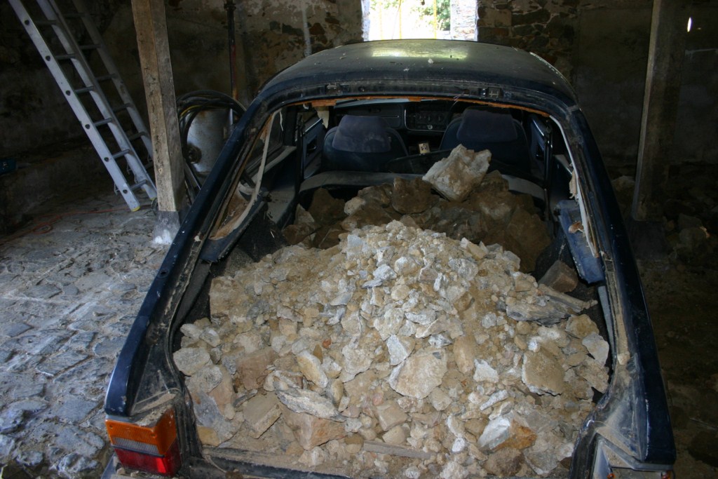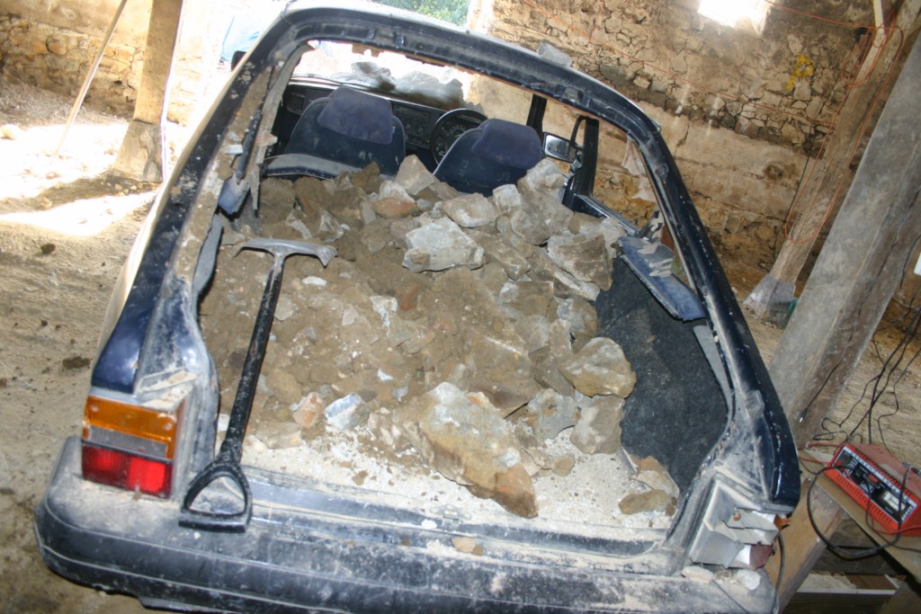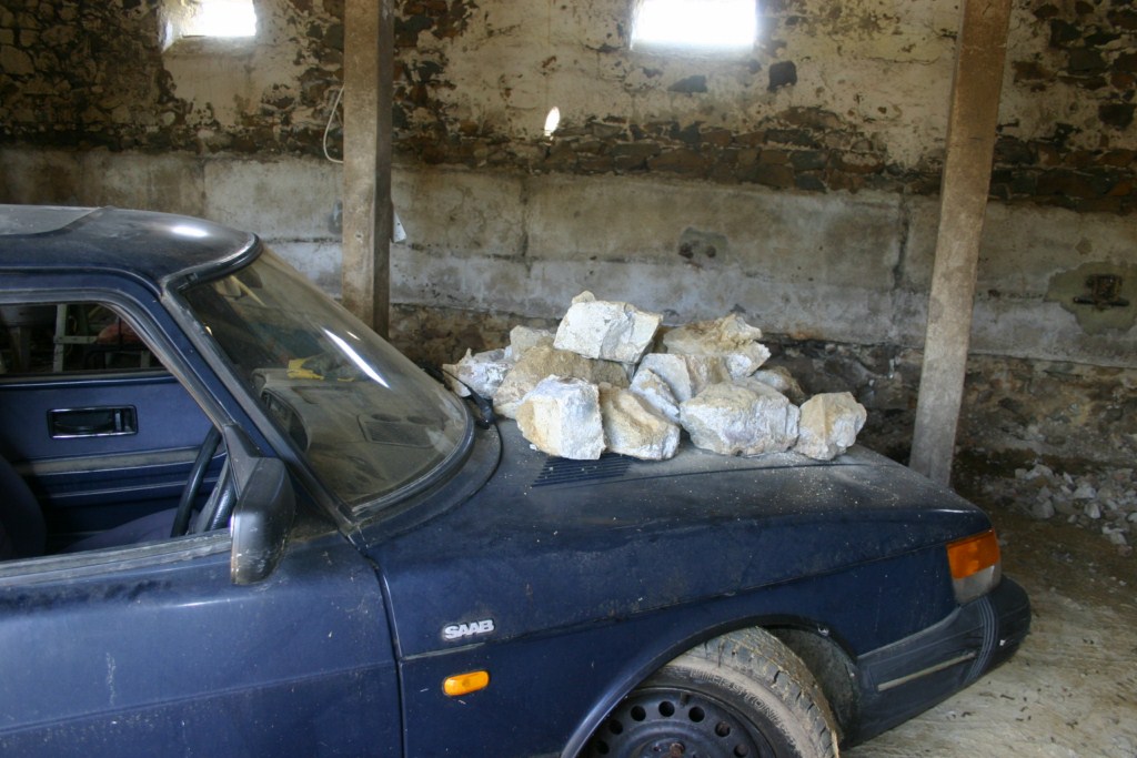 This is probably the most stone and rubble placed into the Saab. I had a real problem getting it out of the barn as the front wheels were hardly on the ground.