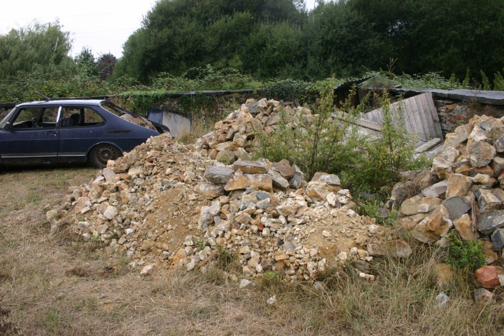 This was the pile of stone on the 23rtd August. The blue thing leaning up against the wall is the tail gate from the Saab.