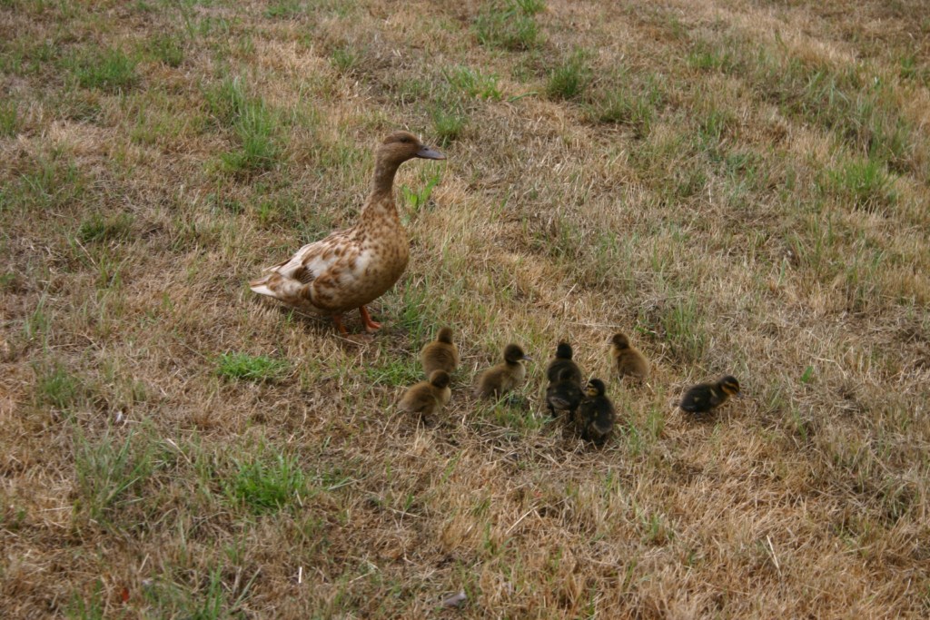 DISASTER! During the night the ducks were attacked by what we assume was a fox. 3 adults dead, one had been decapitated. 2 of the 5 day old ducklings died during the day, from exhaustion rather than injury. However 11 ducks are missing, 8 adults and 3 "teenagers".