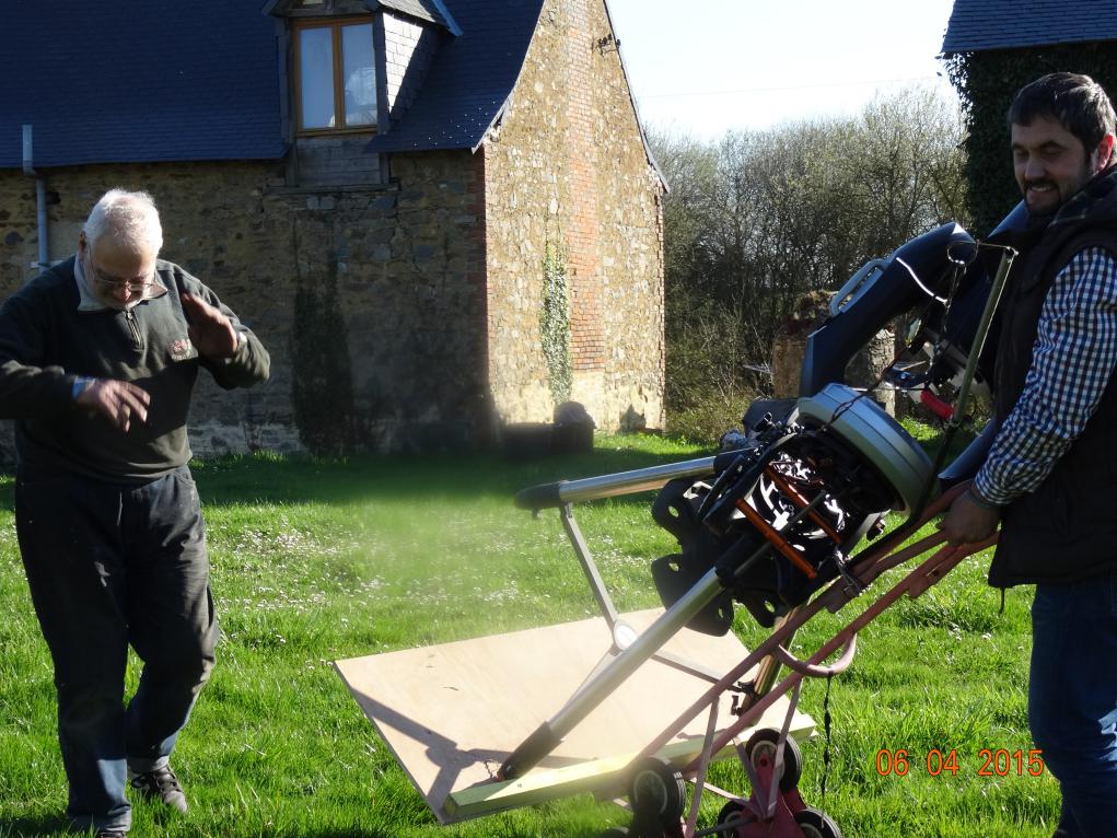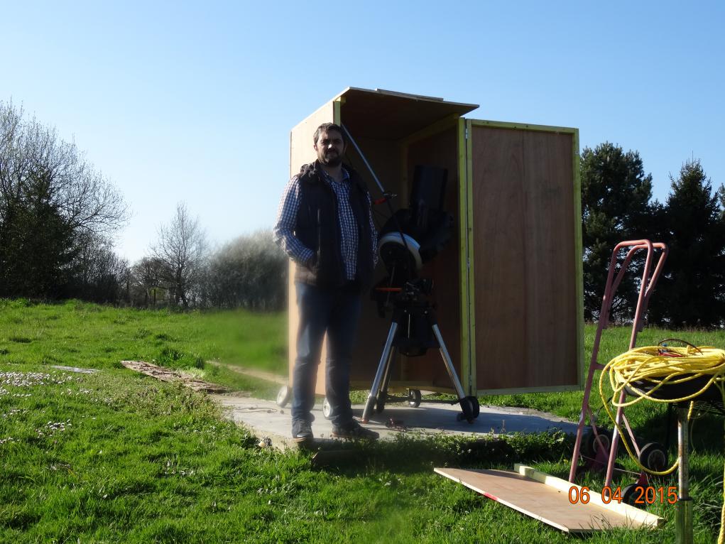 On the 7th April (2015) Chris Eccles (who was here for the week) and I moved the new telescope house and telescope from the garage to the concrete pad. I say "we" but he did all the work!