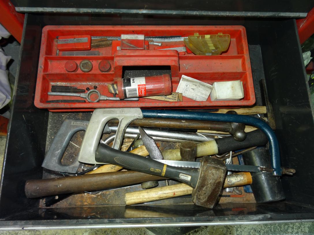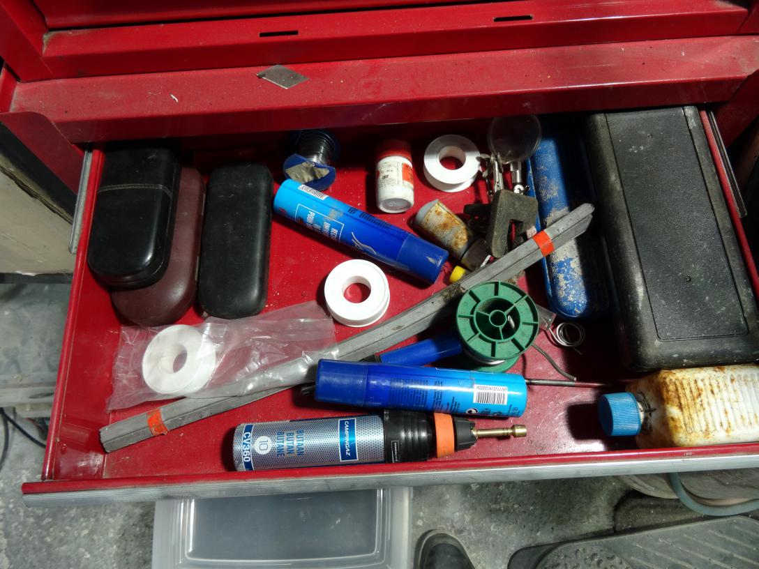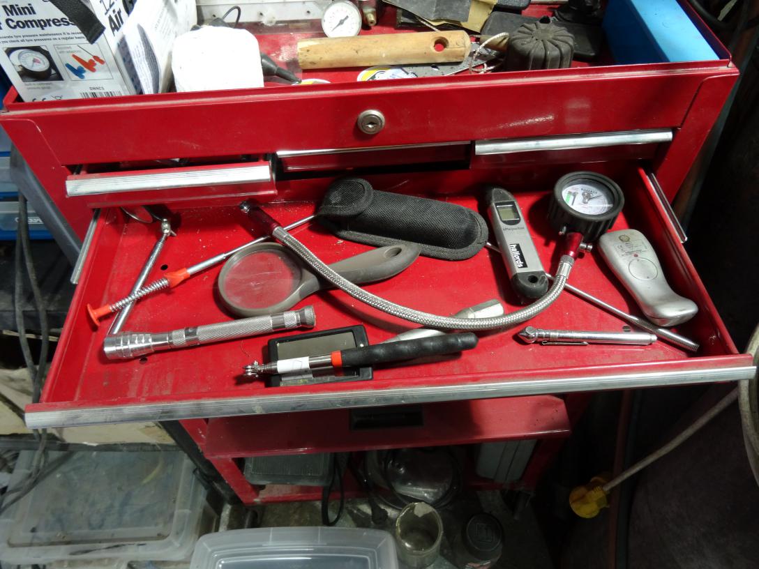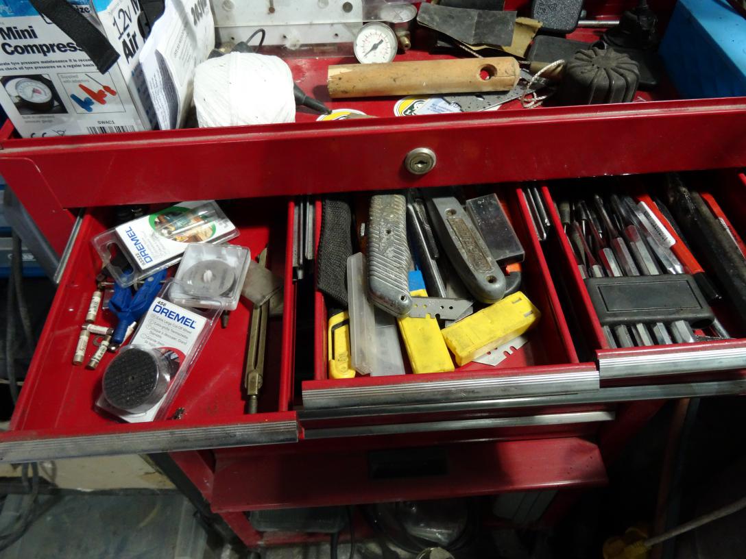 The three small draws hold (l-r) feeler gauges and compass and a few Dremel bits, knives, punches and chisels (going to need the chisels when the TC arrives)