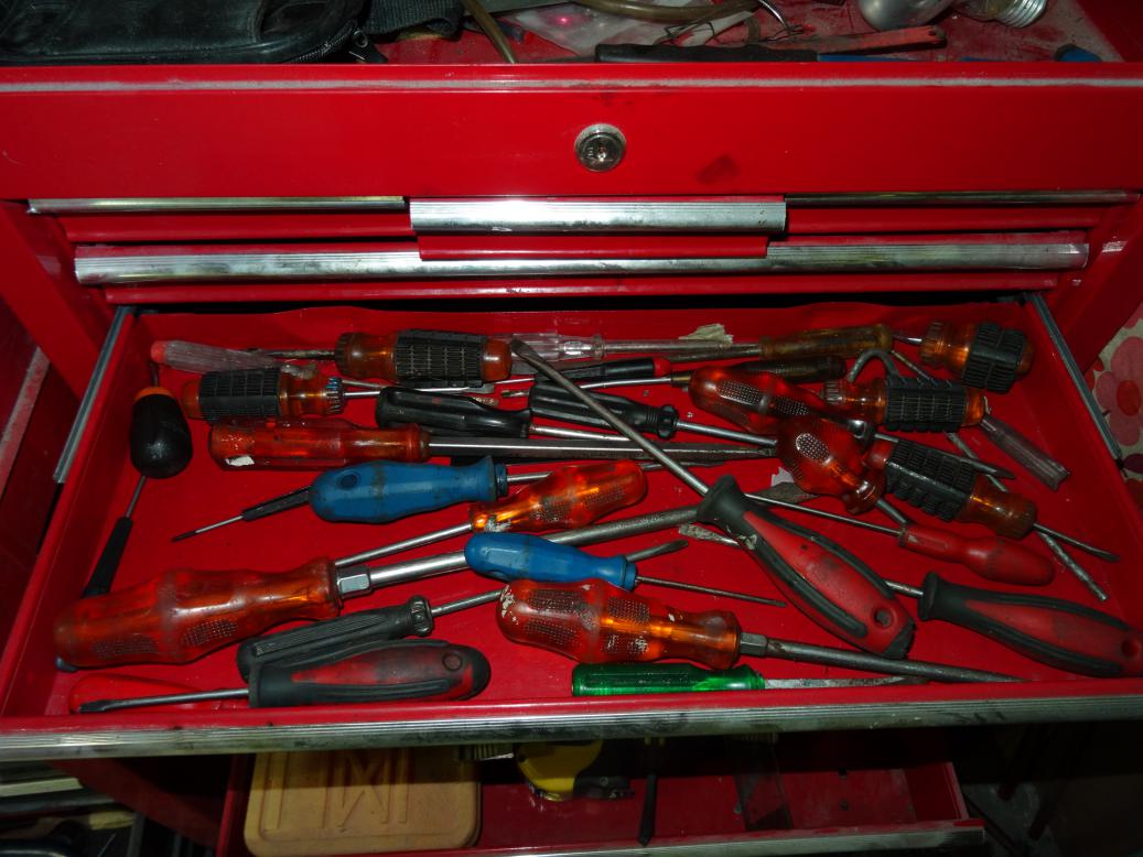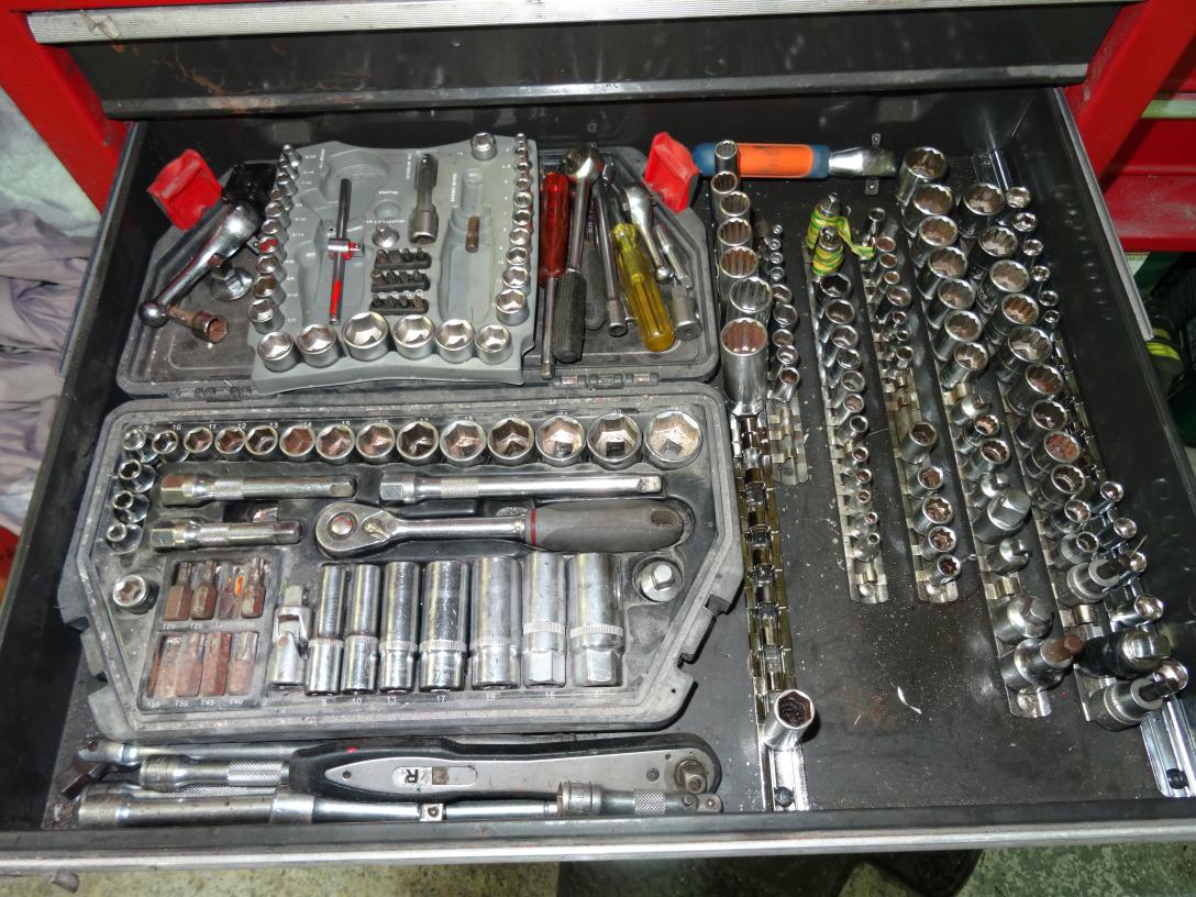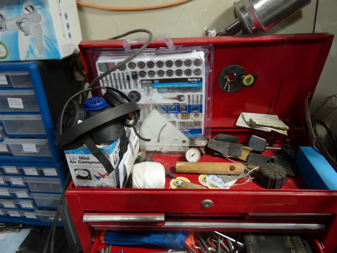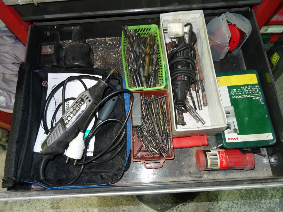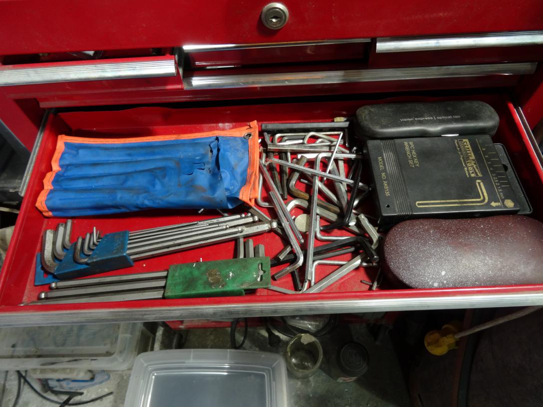 The three small draws hold (l-r) feeler gauges and compass and a few Dremel bits, knives, punches and chisels (going to need the chisels when the TC arrives)