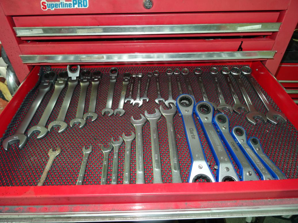 The Whitworth collection. 2 sets of Combo's and 2 sockets, 1/2" and 3/8". The large spanners on the right are just that-large AF and metric spanners
