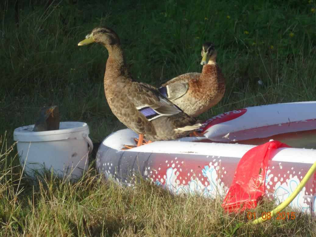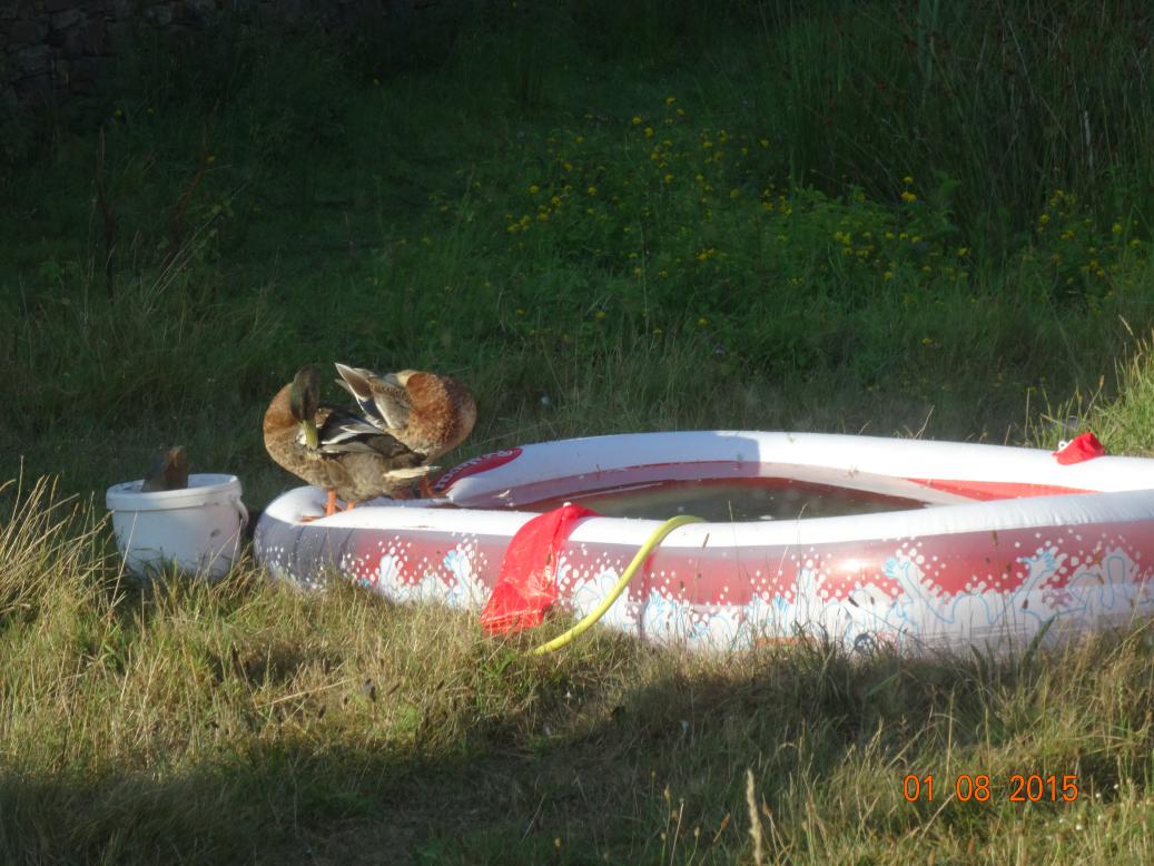 The ducks on the new paddling pool. Lynne had to put a plank on it so they could walk up and jump in.