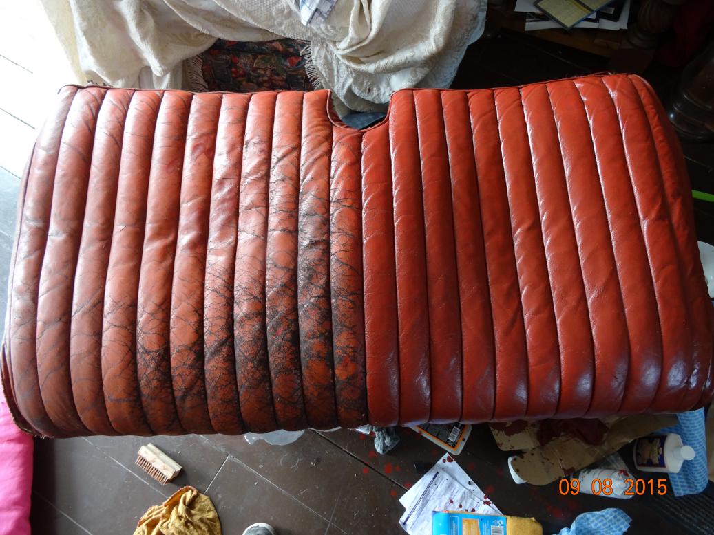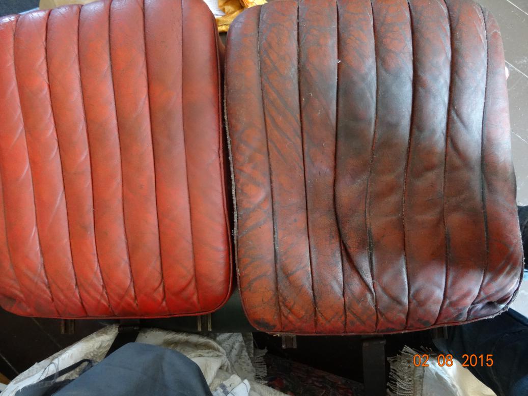However before I got the kit I applied a lot of saddle soap, which is used on horse saddles. It returns dry leather, which mine was, to being more supple. I needed to wash it off and maybe the stain remover helped with that. Remember that my seats were in a lock up garage for 48 years so had dried out to the point of cracking.