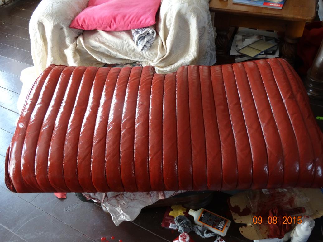 Put all the stuff away from last night and then updated the blog. Then started cleaning the patio. Scrubbed away with a stiff broom then that light I have on top of my head came on. Got the jet wash and used that. Cleaned in an hour. Perfect. Had lunch then started cleaning on of the seat cushions. Applied the scuff master red colour wash and it's come out quite well. Will need more coats but looks like it's going to look good.
