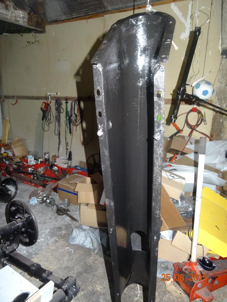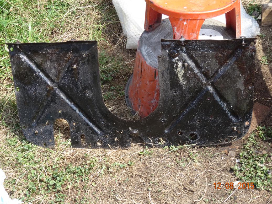 We were supposed to have thunderstorms but it was hot and very humid. I had treated the inner rear wings with Phosphate last night so I scraped the inner rear wings as best I could. I then got the bulkhead out and the rear panel (just in front of diff) and coated both with phosphate. I had to take a couple of hours out to arrange for the trip to collect the tub. My son-in-law and daughter are picking it up from Lancashire (north of Lancaster) on Monday 31st August and taking it to Ports mouth. We're going over to collect it. So, I had to arrange a van for them, a van for us, a ferry booking and two hotel rooms for the night. Ended up having to hire the vans from the Saturdays and we're having to go to Ouistraham on Sunday, stay overnight and get the 0815 boat Monday morning. Anyway, all booked and ready to go.