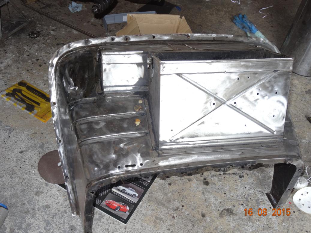 Spent the day with the scouring discs in the angle grinder and finished the two rear wings, the footboard and the outside of the bulkhead.
