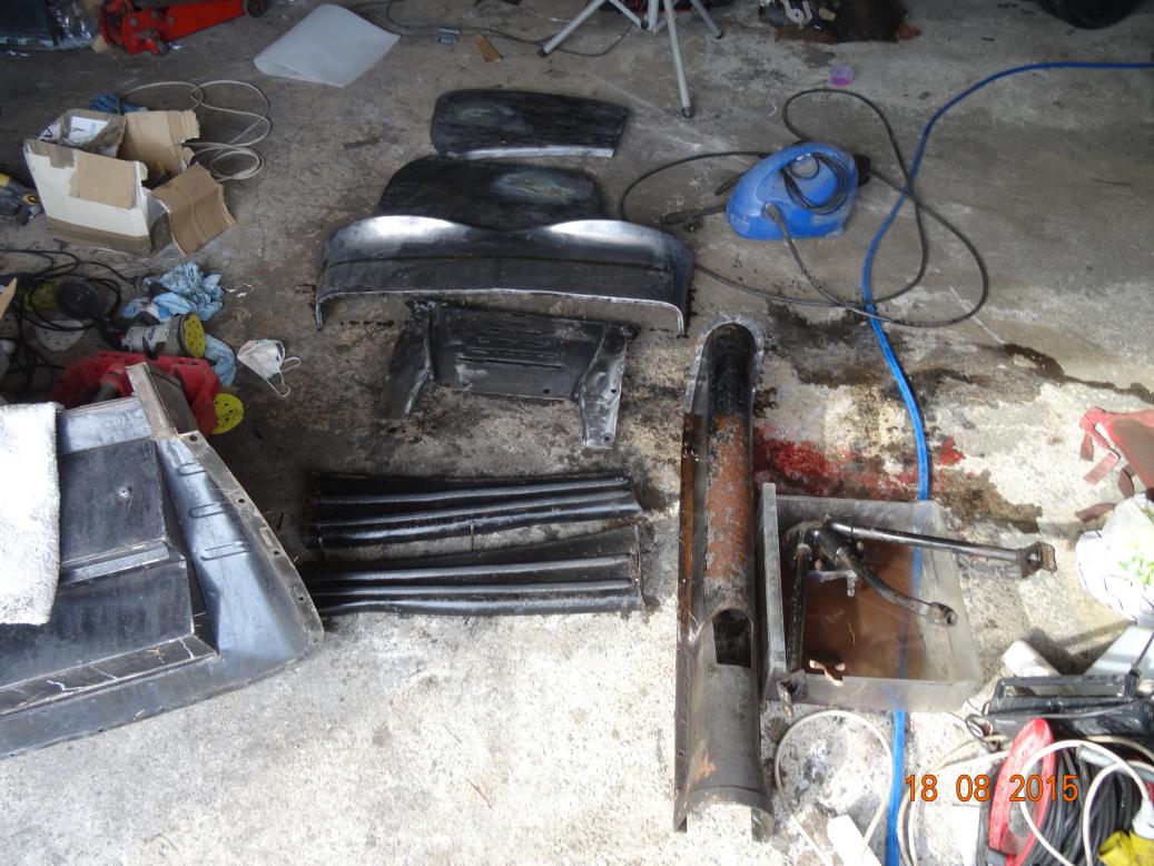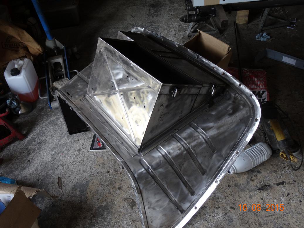 The tunnel, running boards, front apron, scuttle and spare wheel carrier awaiting their turn.
