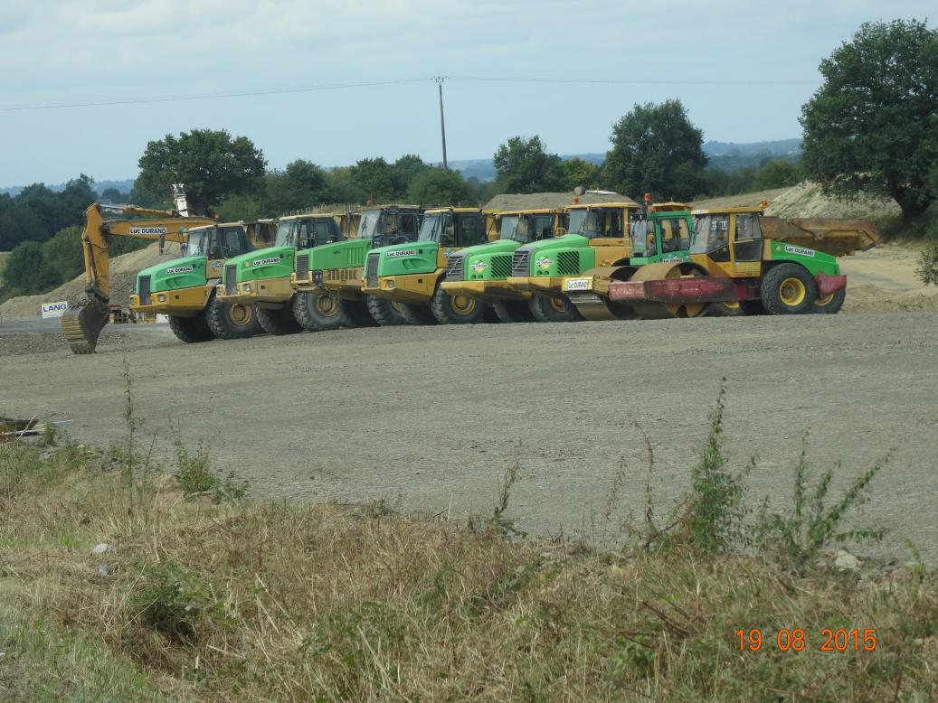 Between here and Angers is a section of road which hasn't yet been upgraded to the new dual carriageway between Rennes and Angers (they've been building it, bit by bit, for 12 years). They are just building a part (maybe all) of the missing section. The site manager must have a very tidy mind and a sense of humour as this is how he has the earth movers parked up every night.