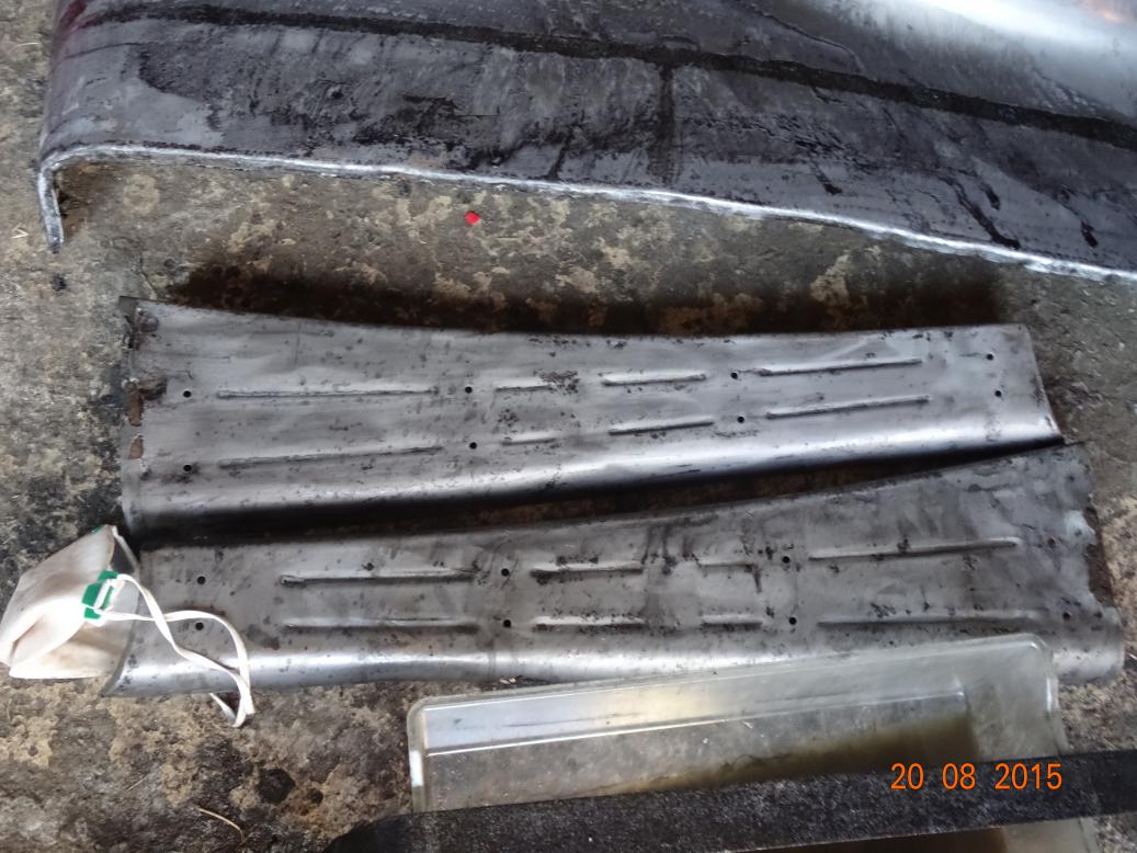 Panels waiting to be scurf fed to bare metal. That's not holes in the scuttle (although there are some where the screen stantion goes) but liquid on the panel.