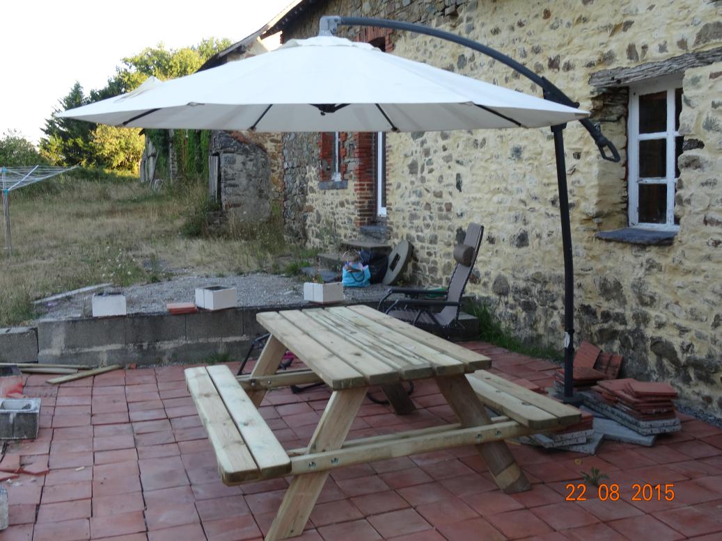 The new table. Last week when Lisa and Phil were here I found a wasps nest in the fold of the rolled up umberalla. This week they were back but hadn't built the nest yet. So I sprayed them, about 20 of the little buggers and have now left the umberalla up so they don't come back