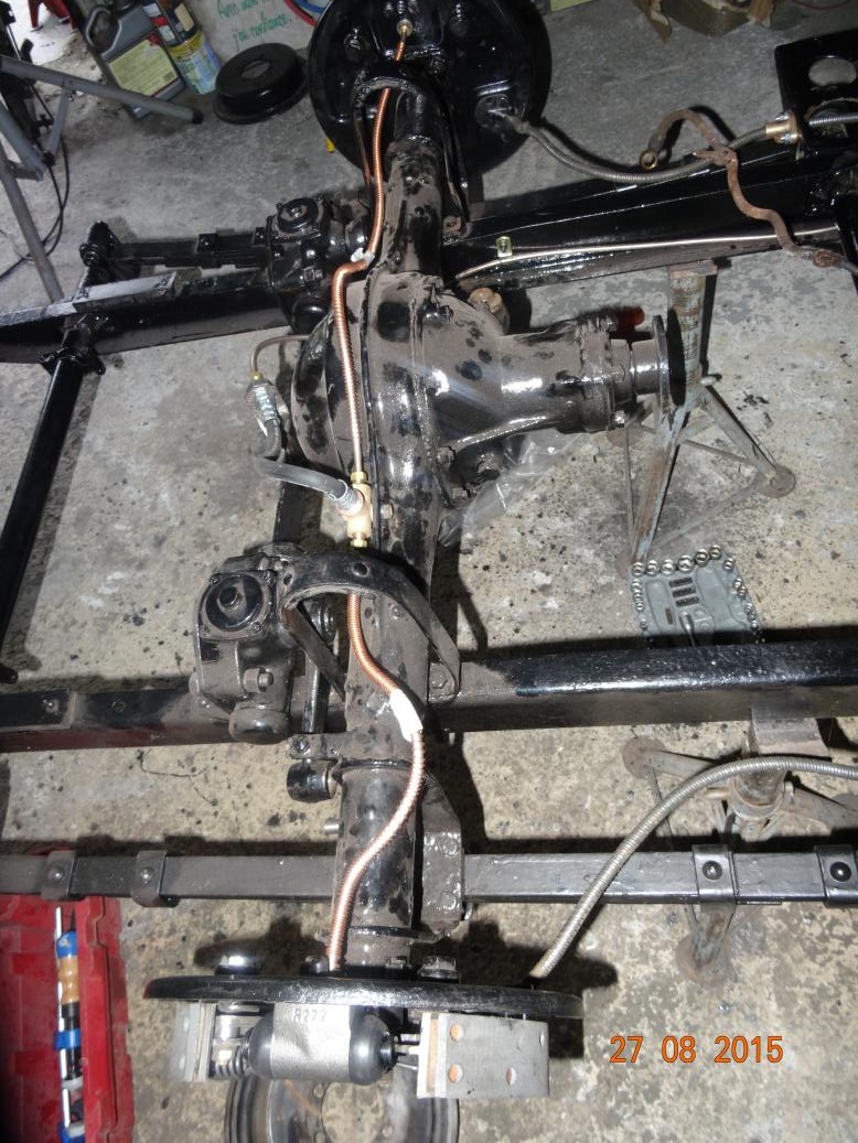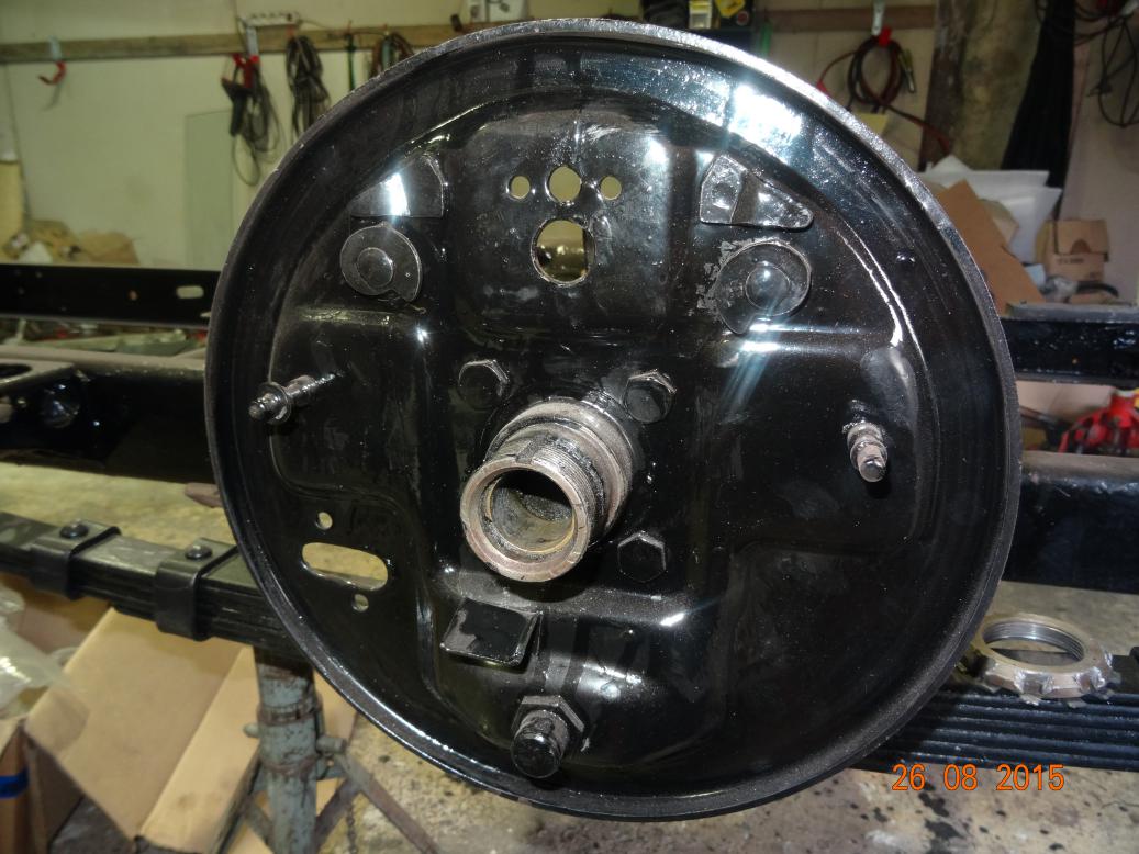 Strtred by getting the brake pipes, which were routed incorrectly, routed in the correct route. Then put the front backplate, shoes and hubs on. Only problem was that 3 months ago when I put the new bearings in I got them the wrong way round. My only excuse is that with my health issues I get very tired quickly and I had 5 fractured vertebrae at the time. Anyway apart from puting the front brake drum retaining nuts on the fronts are finished.