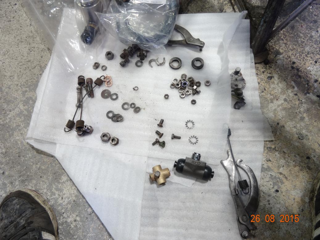 Good day. I did a few bits to the brake lines to get them correct. Then I stripped the brakes off the left hand rear. I had a good look at the expander and immediately saw the problem. The 1/4 Whitworth setscrew that hold the clip for the expander to the shoe was in upside down. The end of the screw was stopping the expander returning home. Turned the screw round, refitted the shoes and the drum just fell on. Had lunch and phoned the garage who are painting the body. Yesterday I had a long conversation with Ron Gammon and he said to fit all the panels to the new tub and they will need "adjustment to fit properly. I'm not good at bodywork and, with my medical condition; I'll struggle to do this myself. So, I went to the bodyshop and spoke to the father (the son, whom I'm dealing with is on holiday) and he's agreed to do the fitting for me. So I'll take the panels and tub there on our return from Portsmouth on Tuesday then collect their low loader on Wednesday and take the chassis back.
