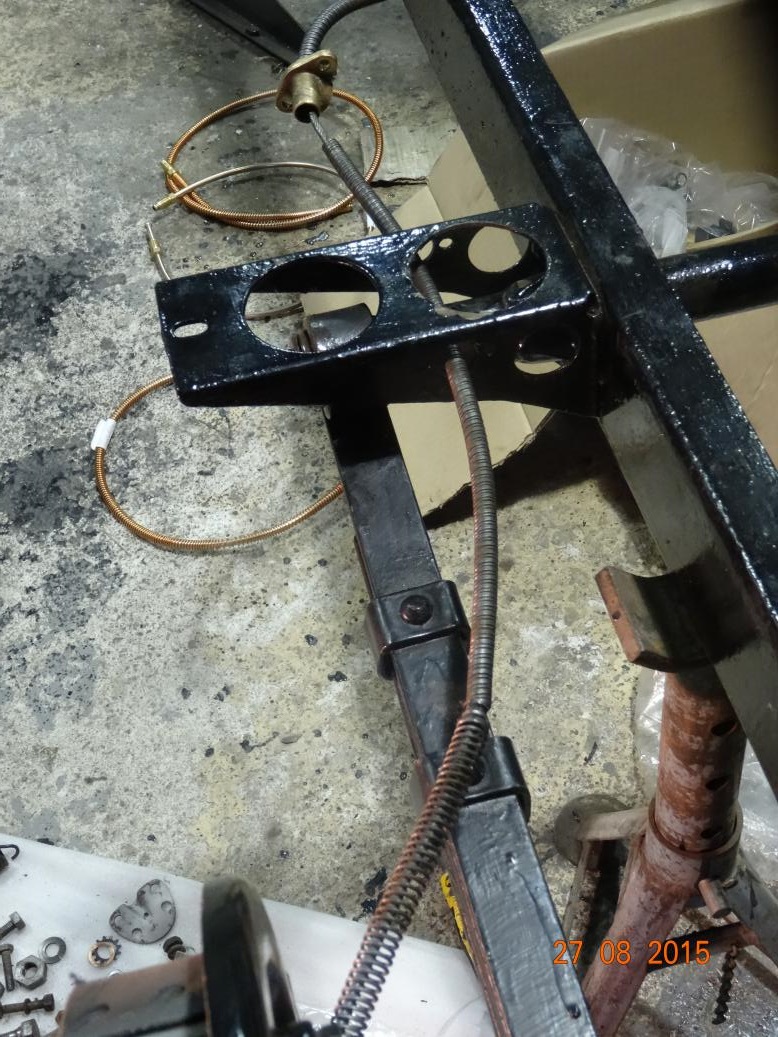 I got two emails from TABC group members. Dirk pointed out that I had the rear brake pipe going across the axle through the rebound hoops. I had meant to route these correctly three times but everytime something else was more important. It's done now. The second was from Duncan who had noticed my temporary plastic core plug with a spike on it on the left hand rear shock absorber. I explaned that due to my medical condition I get very tired and when I'm tired my eyesight gets extremely poor. I had miss hit the core plug when fitting the new one and had now got some more from Roger (Furneaux) and will replace the plastic plug before the body goes on. I was going to refit the right hand rear brake shoes and then take them off to fit the new handbrake cable when it arrives. However I resisted and the parts are safely in a box to be fitted with the new cable.
