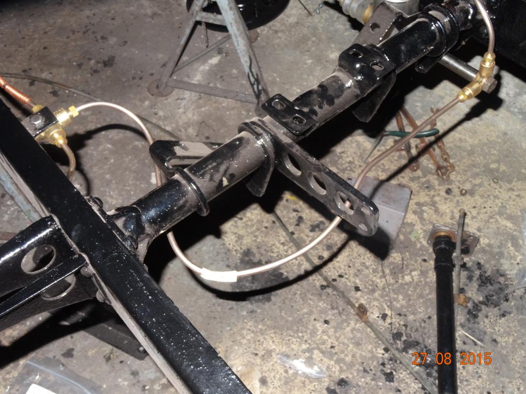 The pipe from the three way to the master cylinder. I'm not happy about this pipe as it's not clipped anywhere.