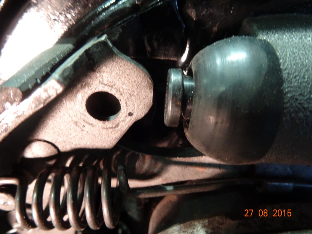The gap between the edge of the shoe and the slave cylinder piston. When it's like this the other side is touching the piston. It slides easily across and then.....