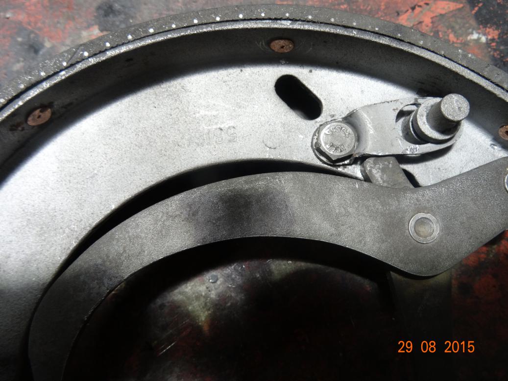 The nearside shoes with the hub. The handbrake cable and expander arm it's attached to should be behind the shoe according to Brown & Gammons. I'll try swopping the shoes over on the bottom fulcrum to see if that allows the arm to move behind the shoe.