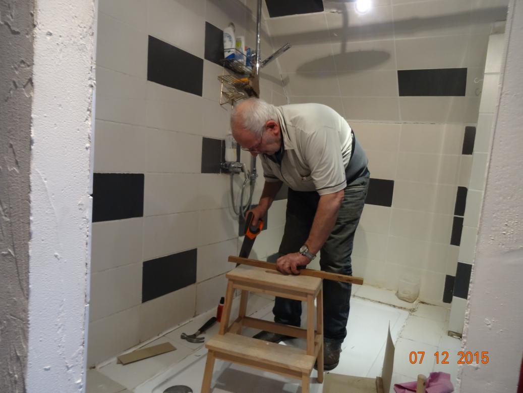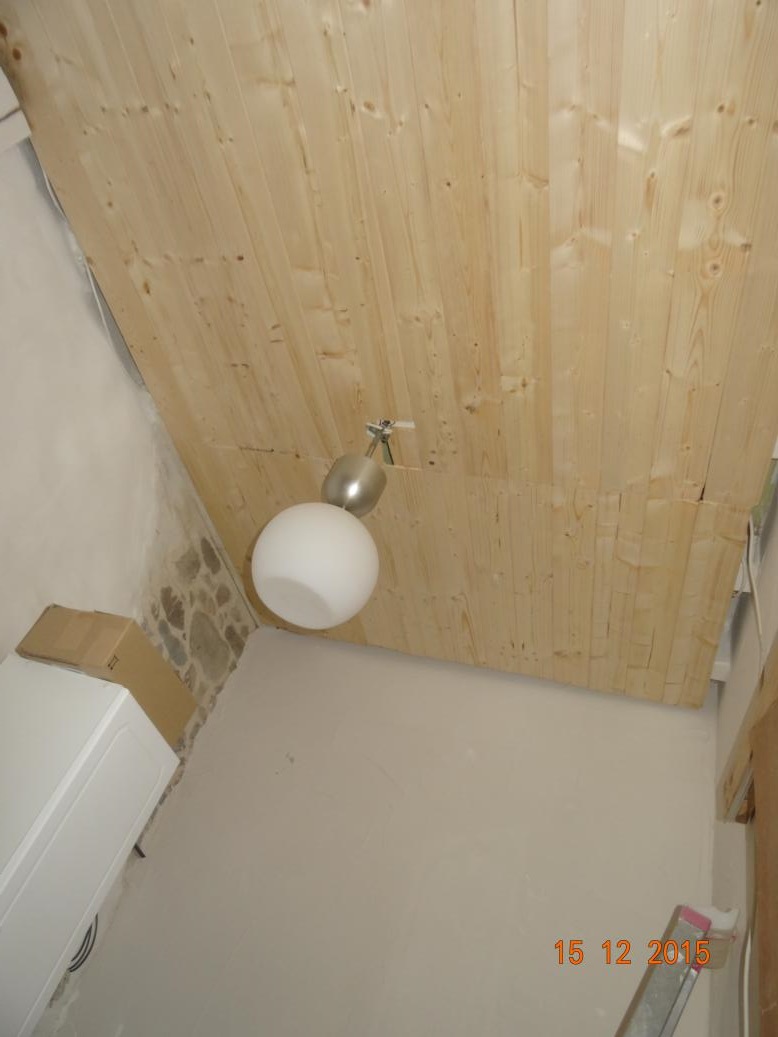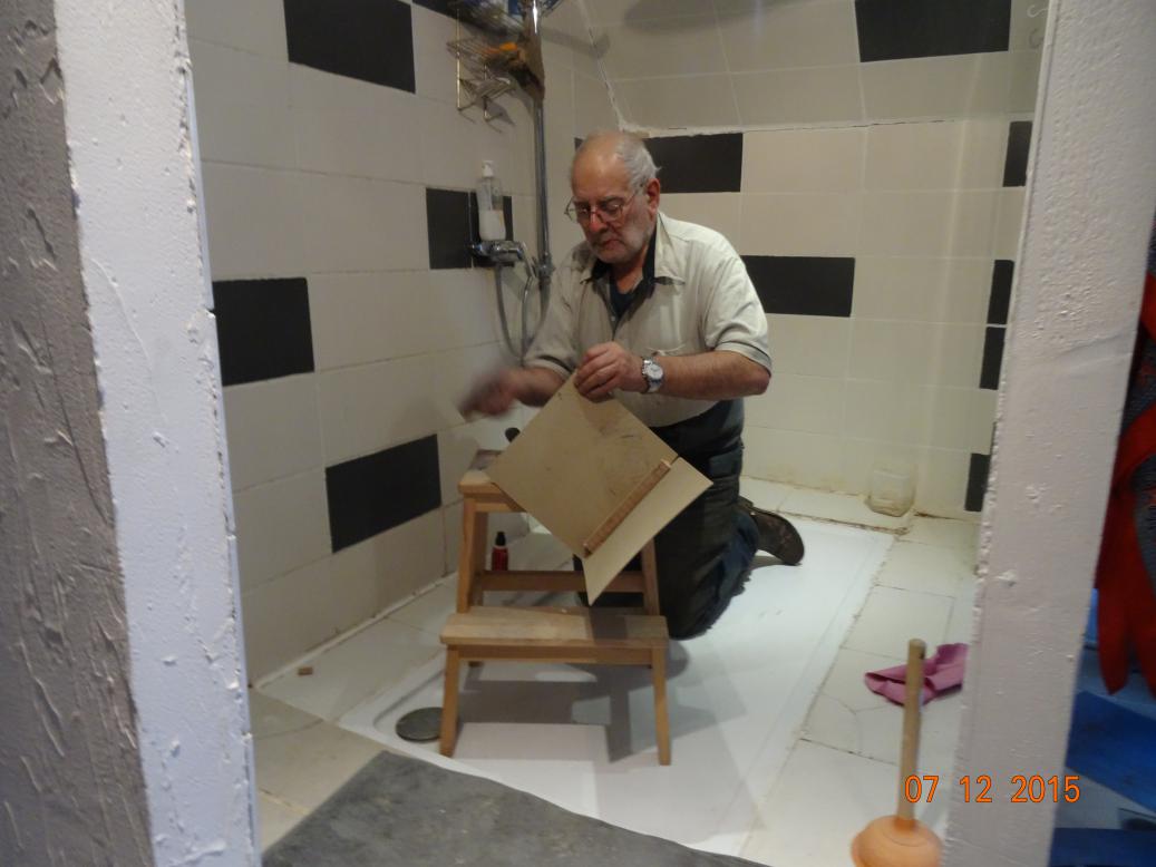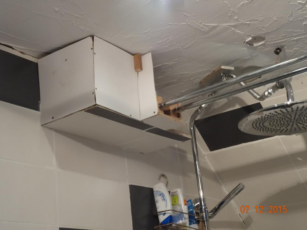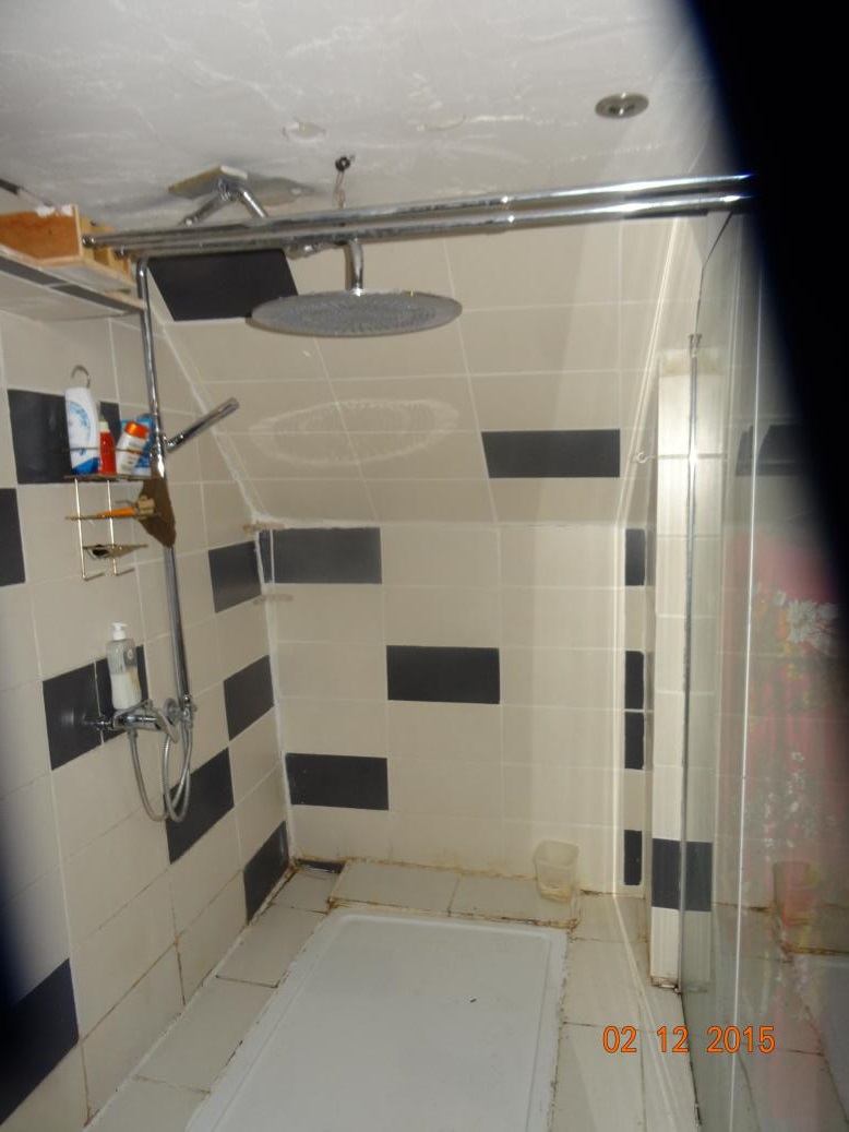 The whole shower so you can see why I had to extend the pipe. It's the largest shower tray I could get. I can almost put both arms up and touch both side with my arms straight. You can see the light which was moved from the centre line to the right so it wasn't above the shower head. I would much prefer a powerful shower than the large "rainfall" head. Problem is you cannot fit a pump in France without fitting a tank otherwise you'll be sucking water direct from the water tower as French plumbing does not have separate tanks.