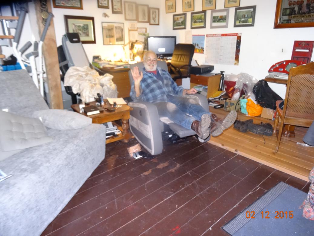 Up at 0600 and ready to start work at first light. Felt a bit tired so sat in my chair and put the fott thingie up. Necxt thing I hear Lynne calling me so wake up and answer. Poor thing jumps out of her skin, she thinks i'm in the kitchen and hadn't notinced me in the cair 3 foot from where she's standing. My nurse informs me I have a temperature and will be staying in my chair all day and tomorrow. I agree.