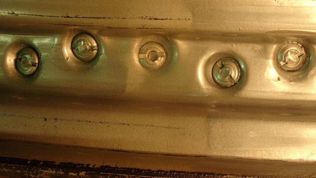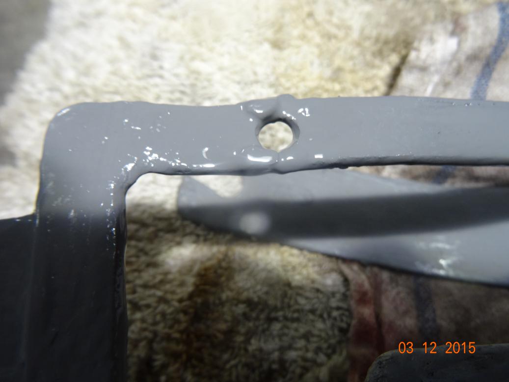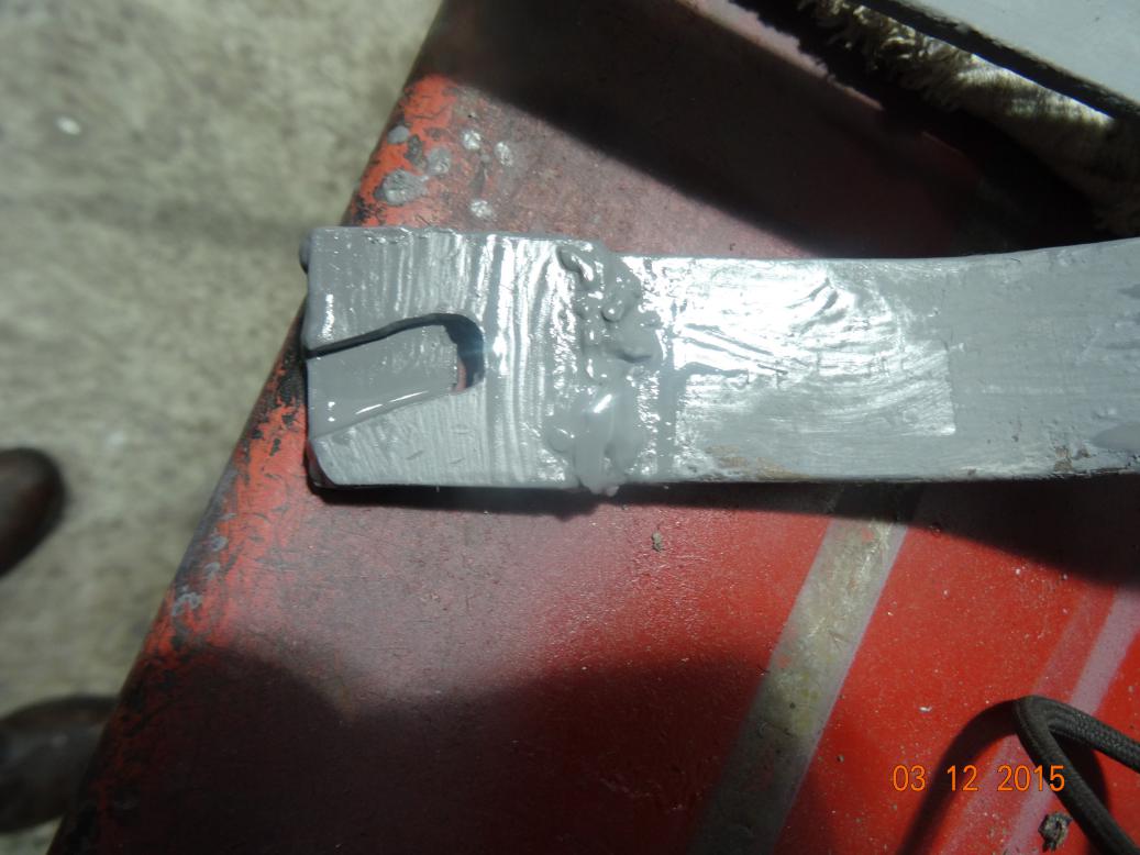 The piece I welded on. The slot will be cut later. I also have the rivets to drill out of the rear frames. But it was painting day so I'll finish the metalwork later and touch up round it.