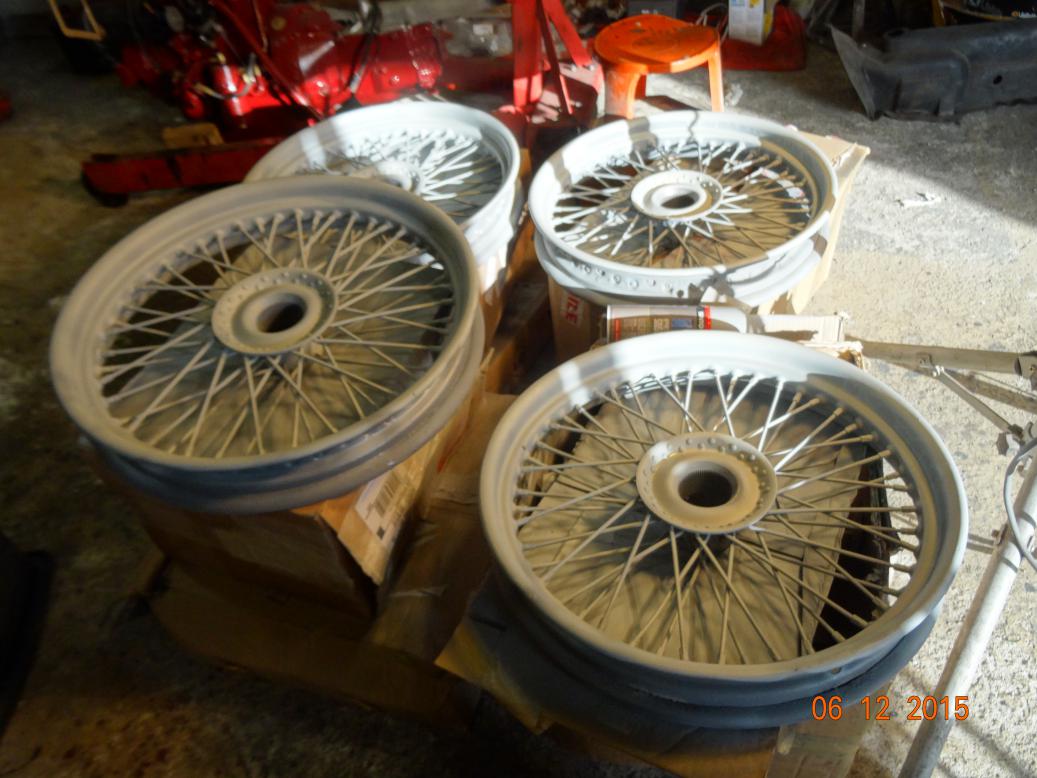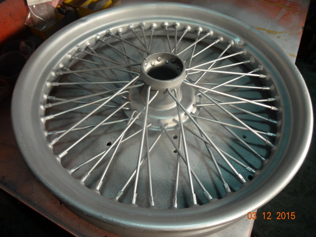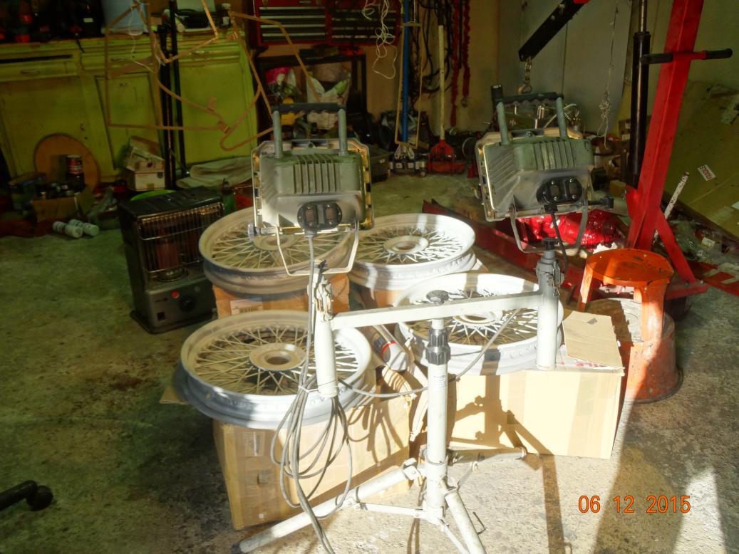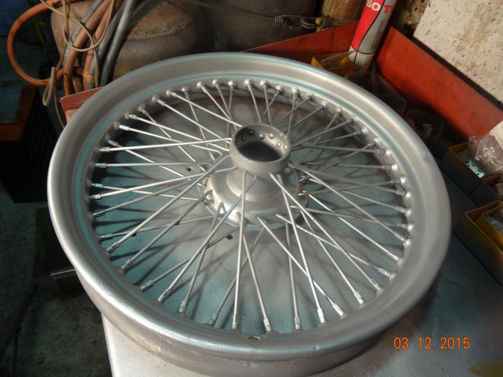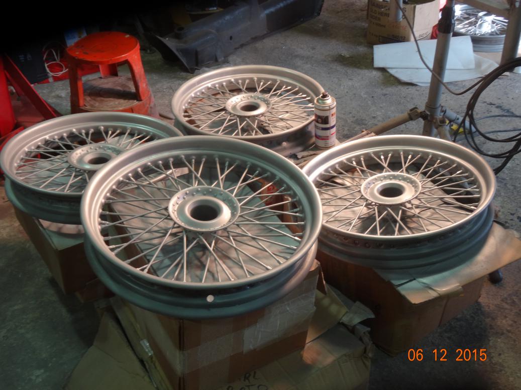 Back to wheels. The second coat of silver has just gone on. Note the brilliant sunshine. No rain at all.