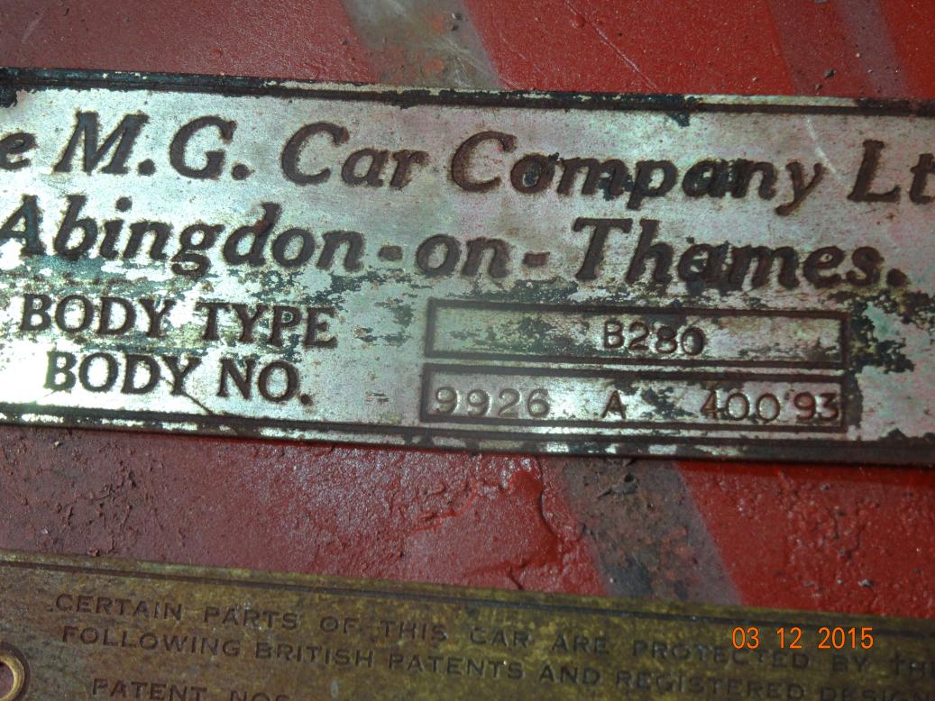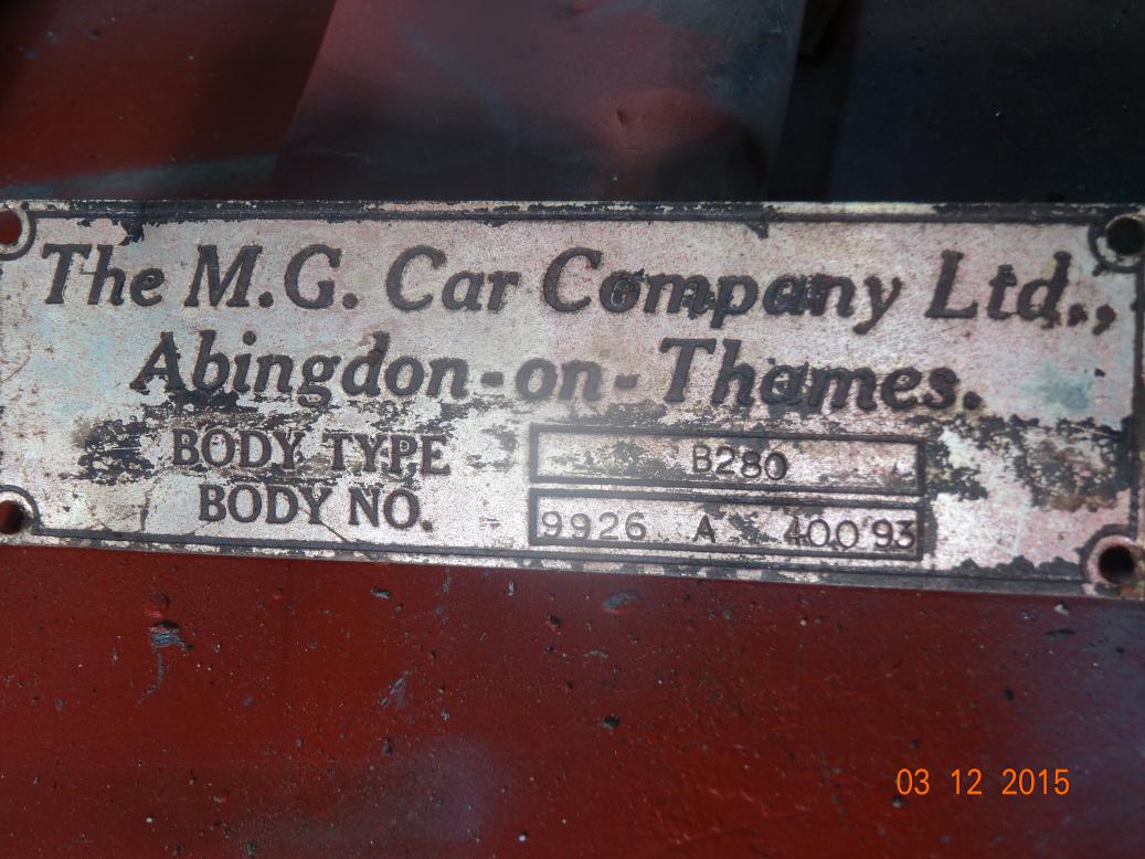 A member of the TABC group has a TC just 22 chassis number from mine. His car doesn't have a body serial number plate. As his engine is also 22 more than mine he's assuming, probably correctly, his body is 22 more than mine. So here it is.