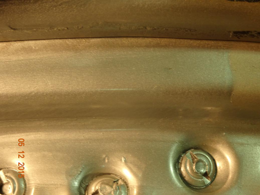 A few weeks ago the TABC group discussed the shade of Silver of the wheels. I said I'd paint the inside of a rim to see how close the Moss wheel paint is. This and the next few show the original paint next to the Moss paint. It's not perfect but very close. The original, although never exposed to light may have mellowed slightly.