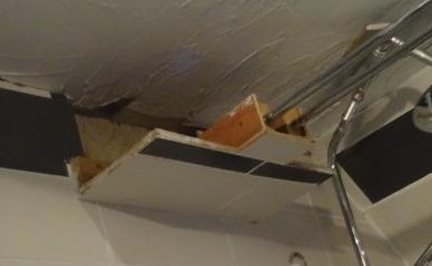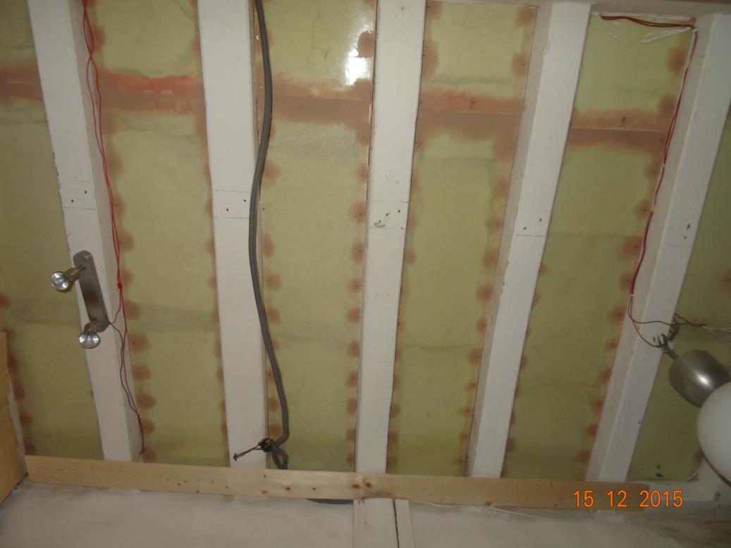 The ceiling showing the fibreglass boards as fitted by Richard.