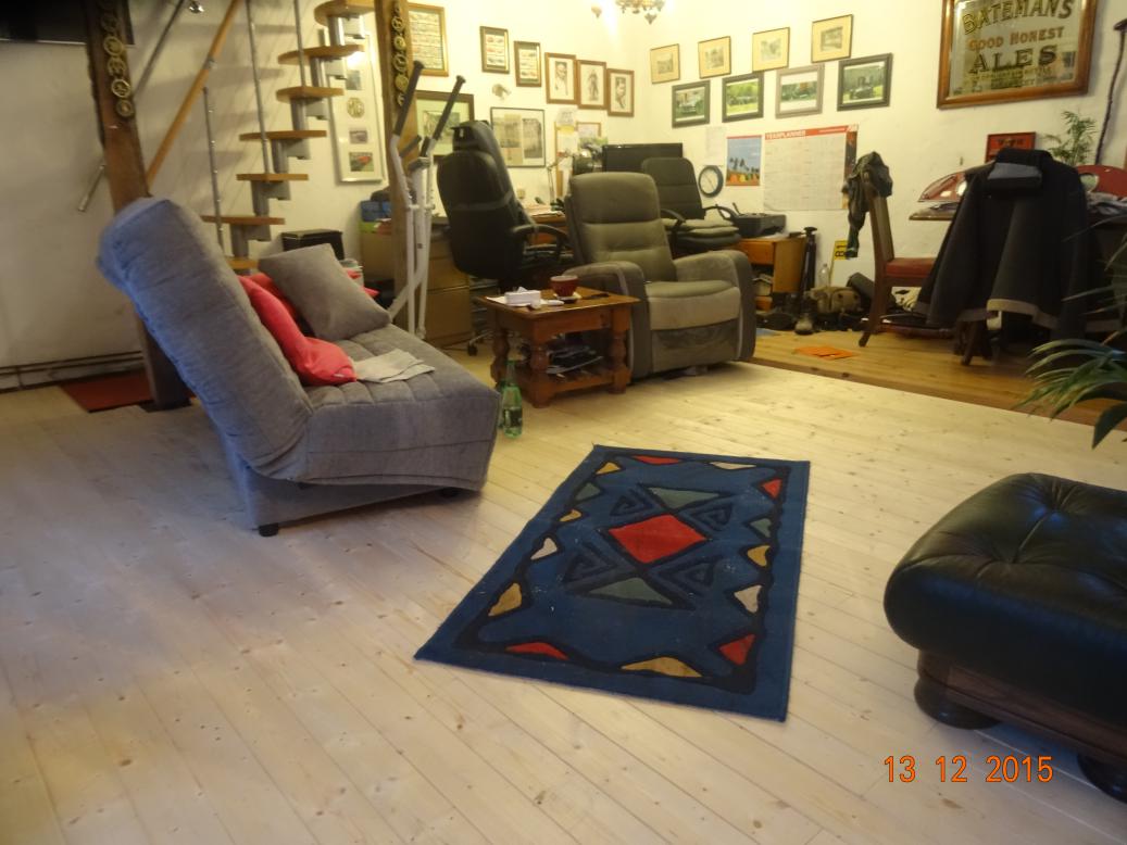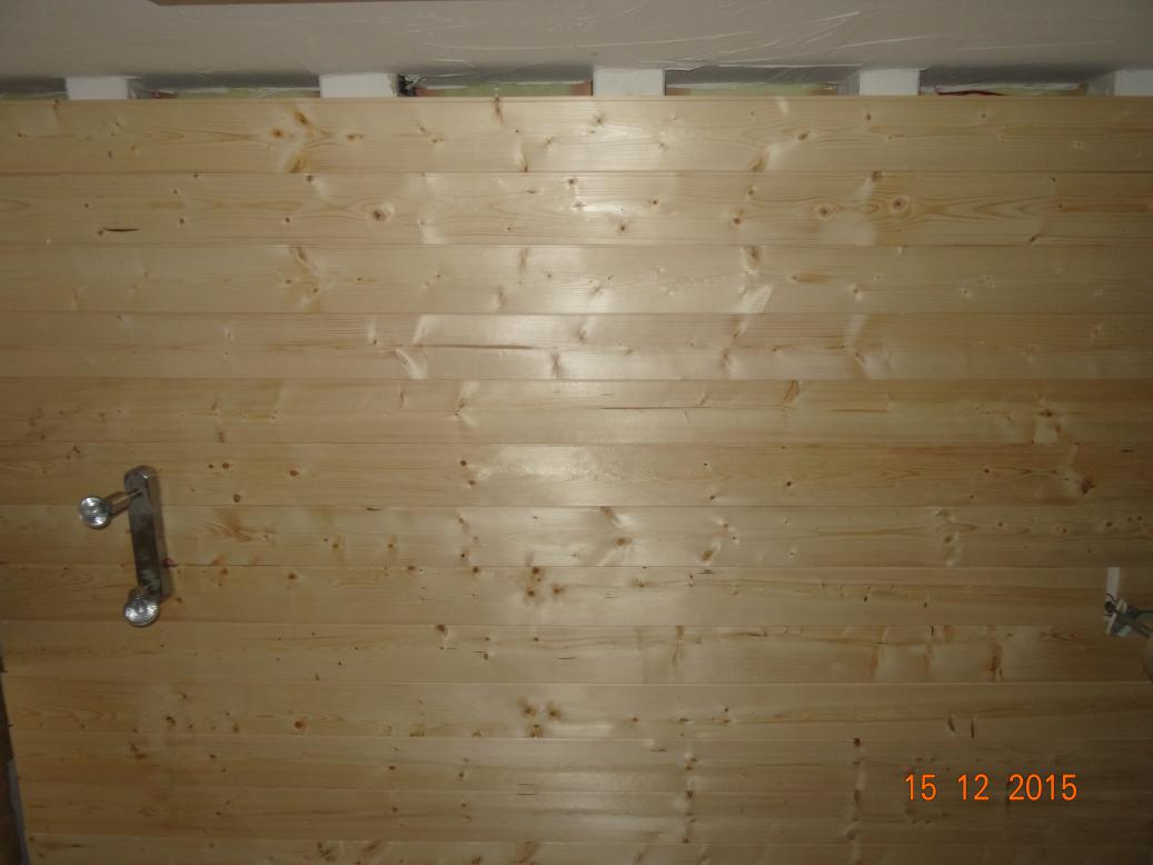 We were both up by 0800 and moved the furniture out of the centre. Lynne varnished the floor (clear) while I started fitting the wall boards to the ceiling in the utility room. Lynne wanted it painted but Richard, the previous owner, had stuck fibre glass sheets between the beams to hold the earth floor in. She had to help me as I found it very difficult fitting 2.06 metre boards to the ceiling when I can't get my left hand above my head.We finished the first stage, the full length boards, at 1230 and Lynne applied a second coat af varnish. We had lunch and Lynne had a nap and I watched TV until 1445. Lynne got up at 1500 and we moved the furniture against the outside wall into the middle and she applied the first coat between the door and the stairs. I fitted the short boards to the ceiling by 1730. I then primed the board in front of the sink. At 1830 Lynne applied the second coat between the door and stairs whilst I put the top coat of white on the board. I've only got to glue the two end boards to the ceiling which I'll do on Thursday.