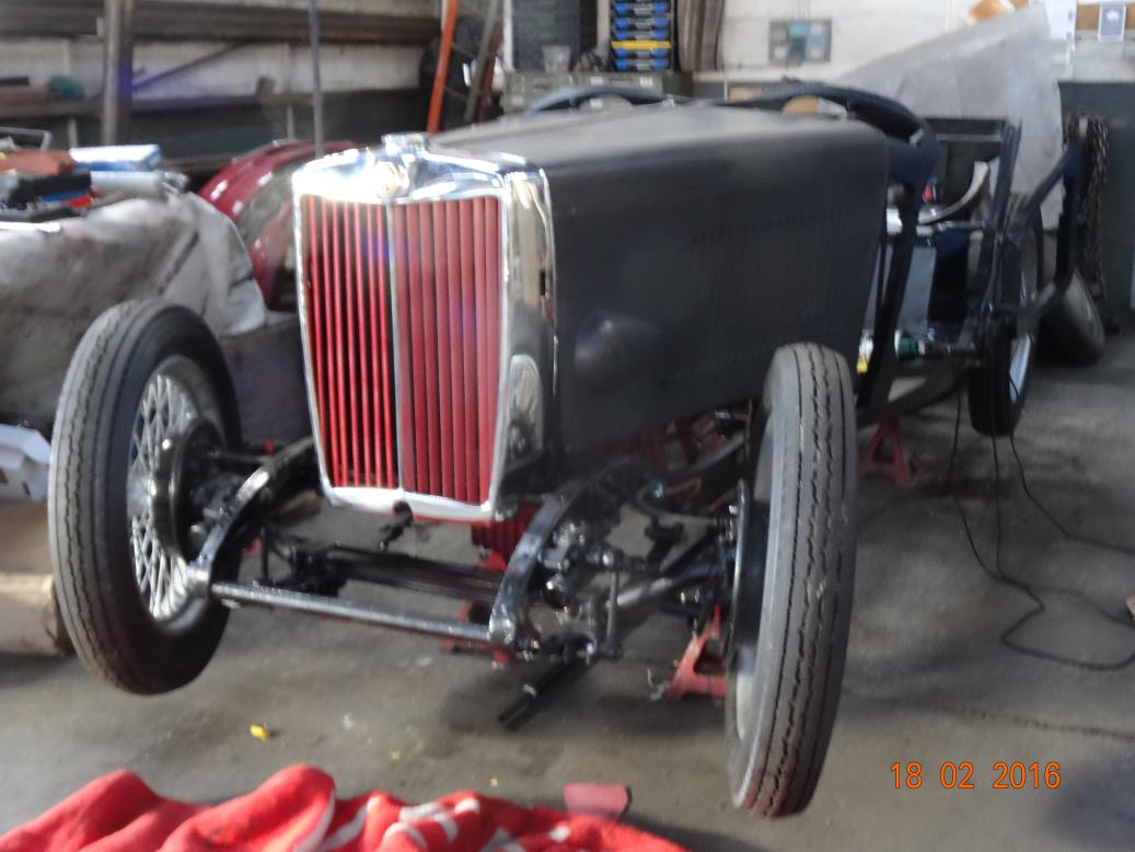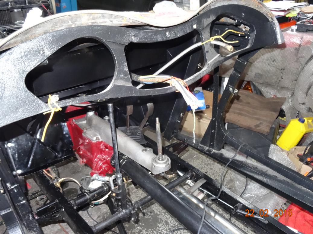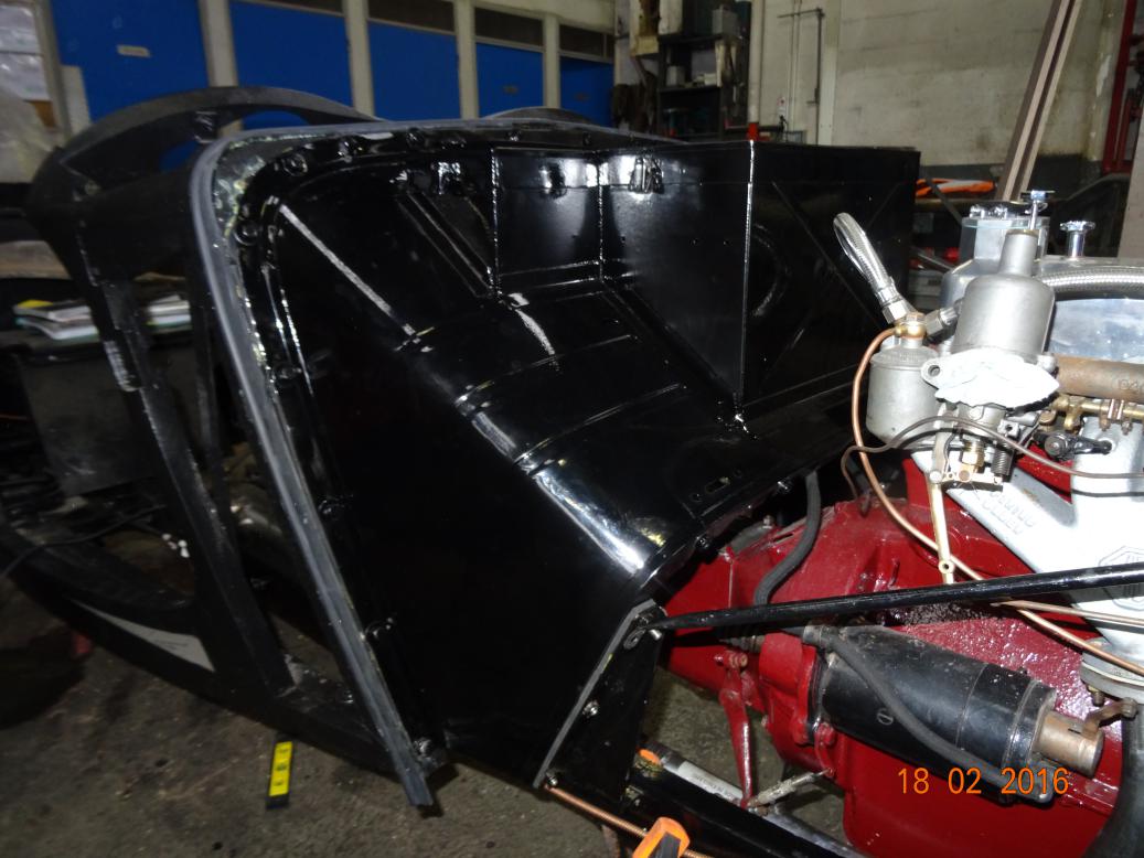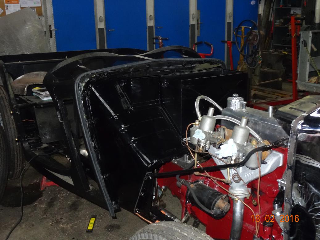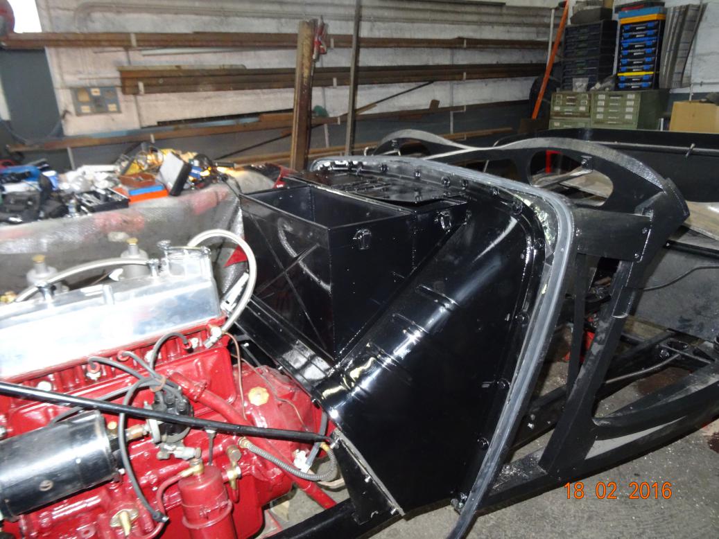 ....and the other side. I'm going back on Friday to fit the bonnet centre fixings as I left them in my workshop. I think it will all line up when the bonnet is fixed. Then I have to take it all apart for the bulkhead and bonnet to be painted. But the body is now bolted down and all is in line. I've drilled 20 holes in the front face of the body for the bulkhead to be bolted.