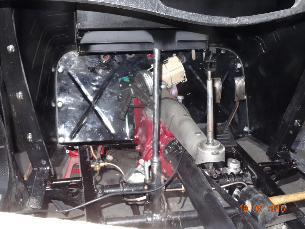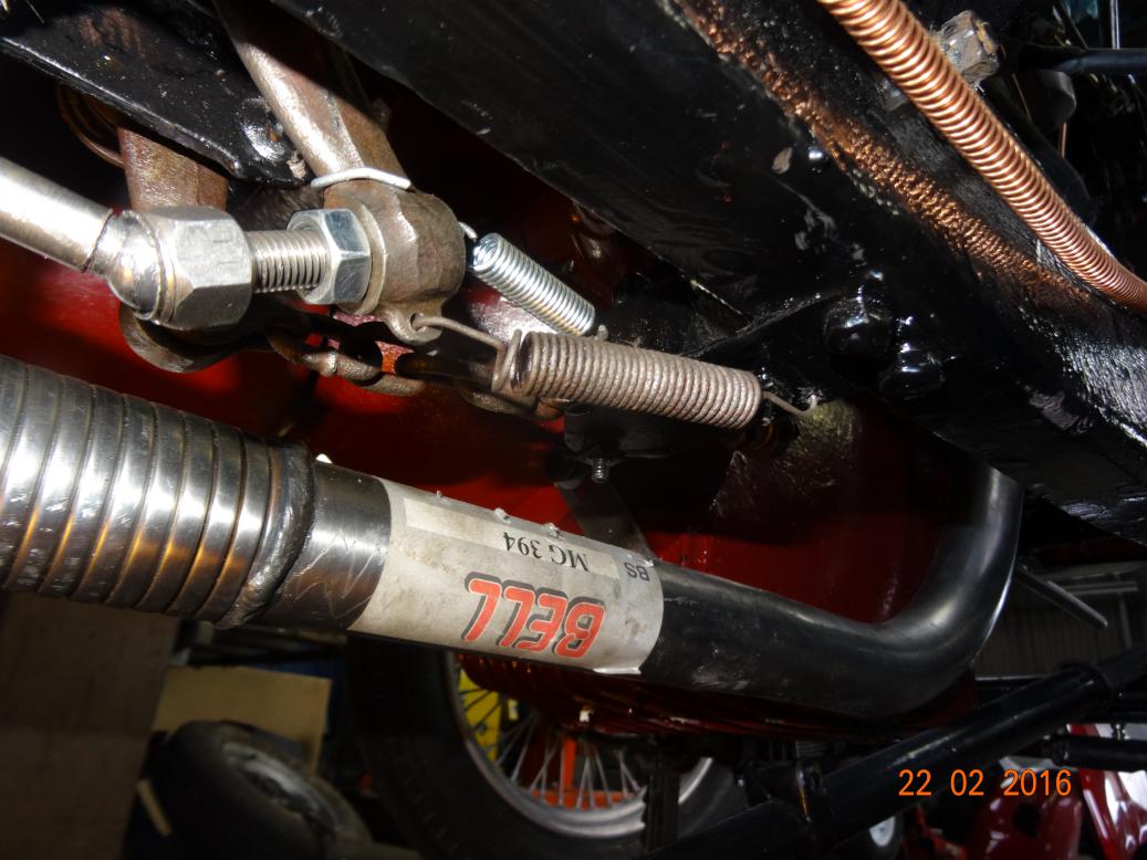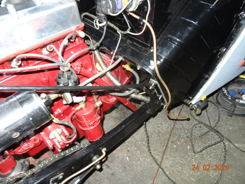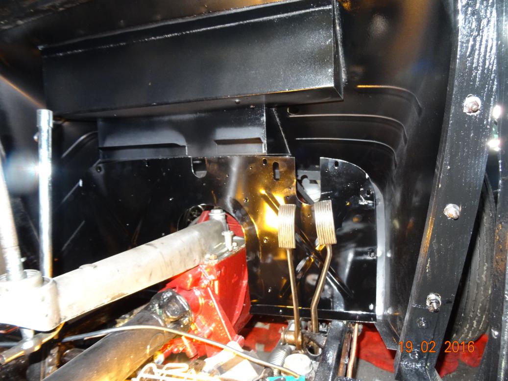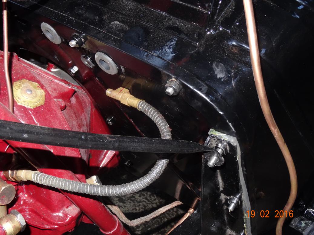I started by fitting the clip to the fuel pipe. Removed the rad case, elongated the holes in the frame and refitted the case an 1" or so lower so I can now get the rad cap on. I then fitted the brake pedal springs. I'm not happy about the brake pedal, after fitting the return spring, which seem to be locating too far back, it's in front of the clutch pedal. When pressed it goes back to the correct place before operating the cylinder. I'll look at it later.