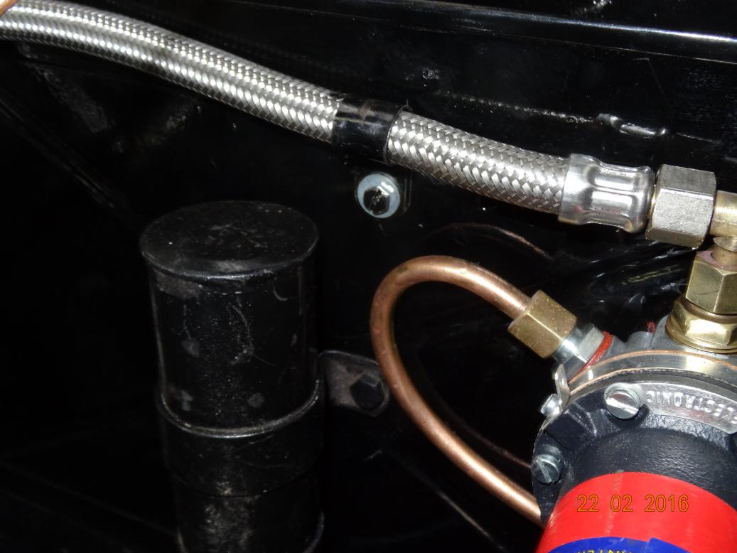 The temporary petrol feed. Tokk ages to fit teh clips to the fuel pipe and loom. Now I've got to undo them and fit a new pipe.