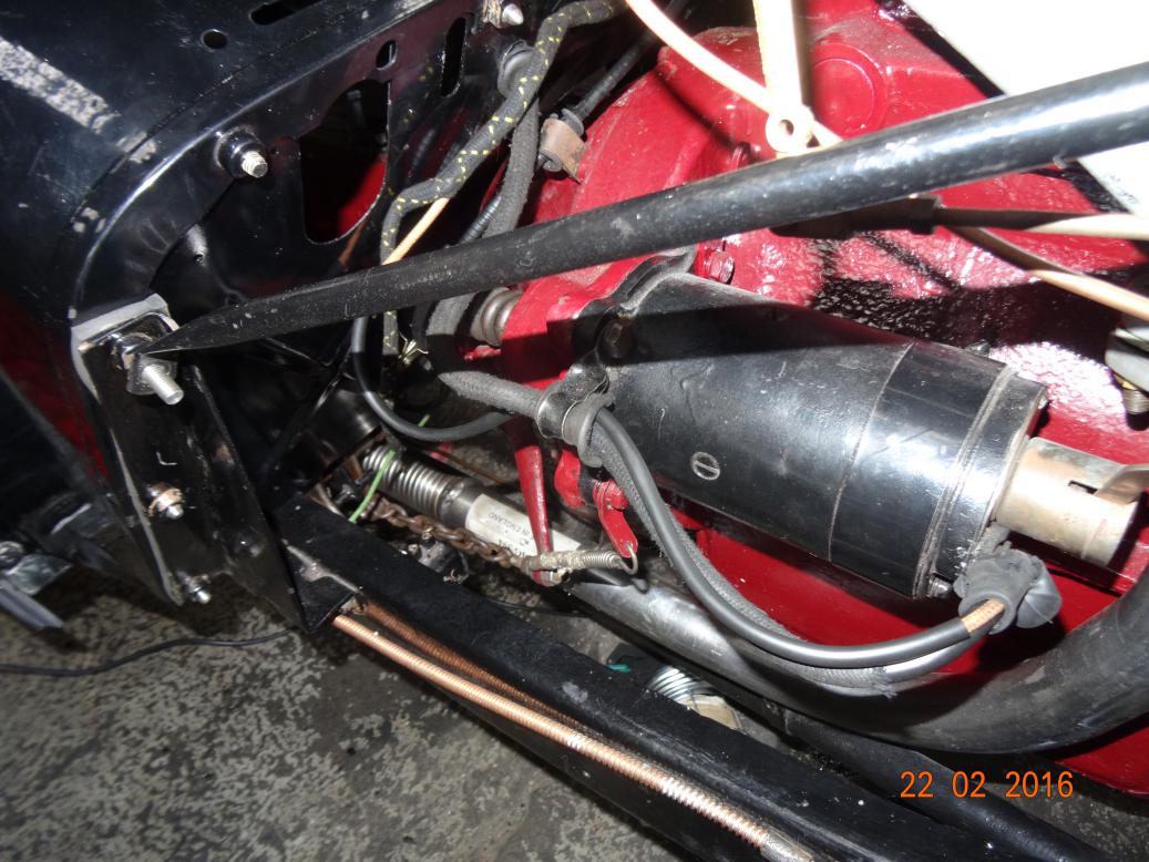 I then got help to install the battery. At first nothing worked. So I removed the earth lead from the side of the battery box, removed the paint to bare metal and refitted the lead. It worked! But there is a short somewhere as the battery terminal gives a hefty spark when touched against the battery post. Also, if I leave it on there appears to be smoke coming from the carbs! It may be from the starter below but it really does look like it's from the braided petrol pipe between the carbs. The starter works but nothing else seems to, no ignition light, no map light, no.... well nothing!