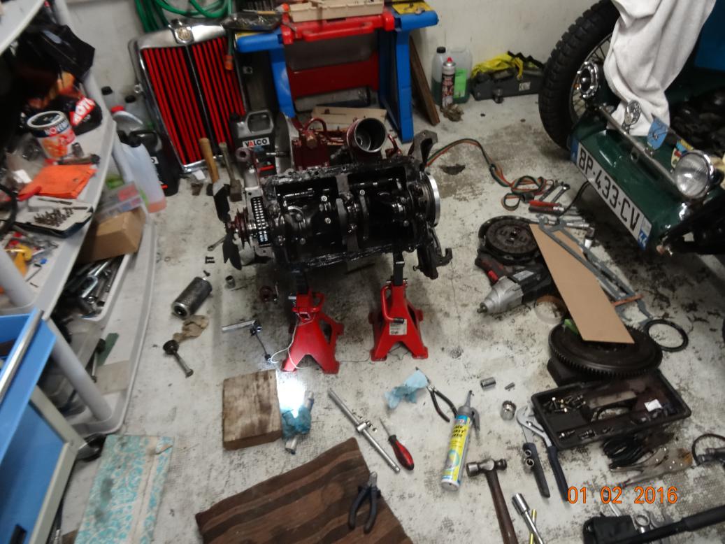 Looks a mess, it is. There are all the bolts that have already been taken off and my friends tools on the floor plus all mine.