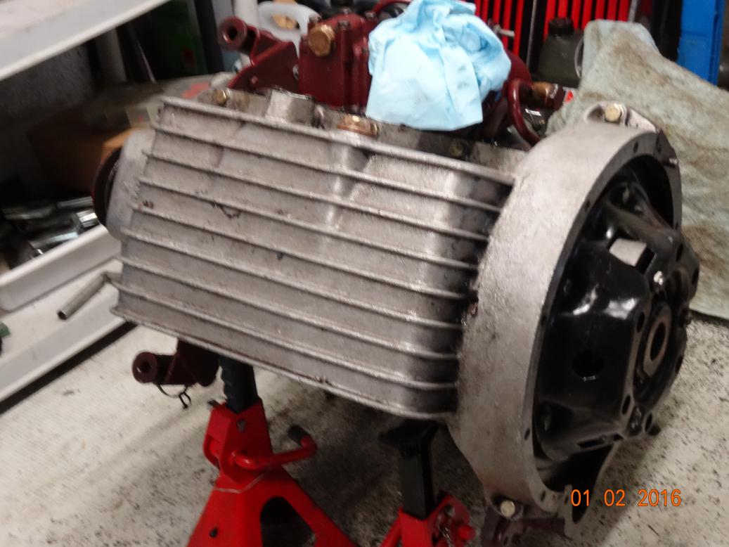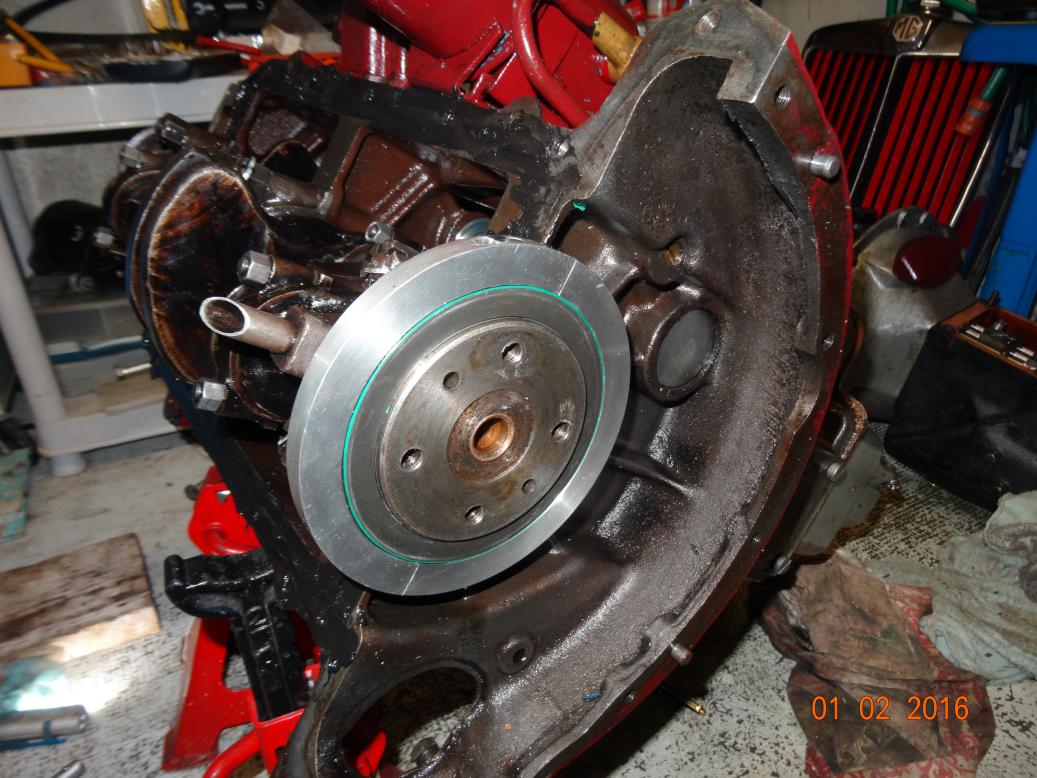Into the workshop at 0900. Moved four cable clips from old loom to new. Cleaned them on the wire brush and painted them black. Tried to solder the ferrules but I couldn't get them hot enough. I'll glue them on later. I went to the supermarket to get Lynne a spare bottle of gas for her porch heater and fill the car. When I got back, I took the gas bottle out and loaded the car with all the tools for today and tomorrow (for the bodyshop). I texted my friend to let him know I was leaving earlier and would therefore get to him earlier. On the way I called into Casterama at Nantes for a tub of lino glue, for the remaining tiles in the workshop, 2 light bulbs for the light over the kitchen table and a can of anti-rust lacquer. I got to my friends about 1300. Got the engine balanced on the two axle stand that the car was on so the sump was pointing upwards then took the clutch and flywheel bolts off. Then all the sump bolts and replaced the front and rear crankshaft seals. I think the rear oil leak was from the half round cork seal but not sure why the front was leaking. Reassembled with plenty off black silicone gasket maker. Got the sump on with all bolts started and the four corners tightened then realised I hadn't put the flywheel on. Off with sump, on with the flywheel and sump refitted. All tightened up and on my way home at 1700. I had been surprised that my text this morning ahdn't been recieved. When I left I found out why.... I had the wrong phone number in the new phone. I sent an email and rang him when I got home, about 1830. Whilst I was there I went up to the kitchen to soak the cork seal in hot water and form it into a U shape. The house is a bit confusing with corridors and rooms everywhere. I couldn't find the door back to the garage. Felt a bit stupid.. which, of course, I am. Eventually found the door which I had thought was a cupboard.
