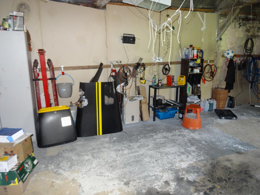 This is the back wall that will be cleared. From the engine crane (which will stay there) to the black stand, which is the battery charging deposit (car batteries-3 charges).