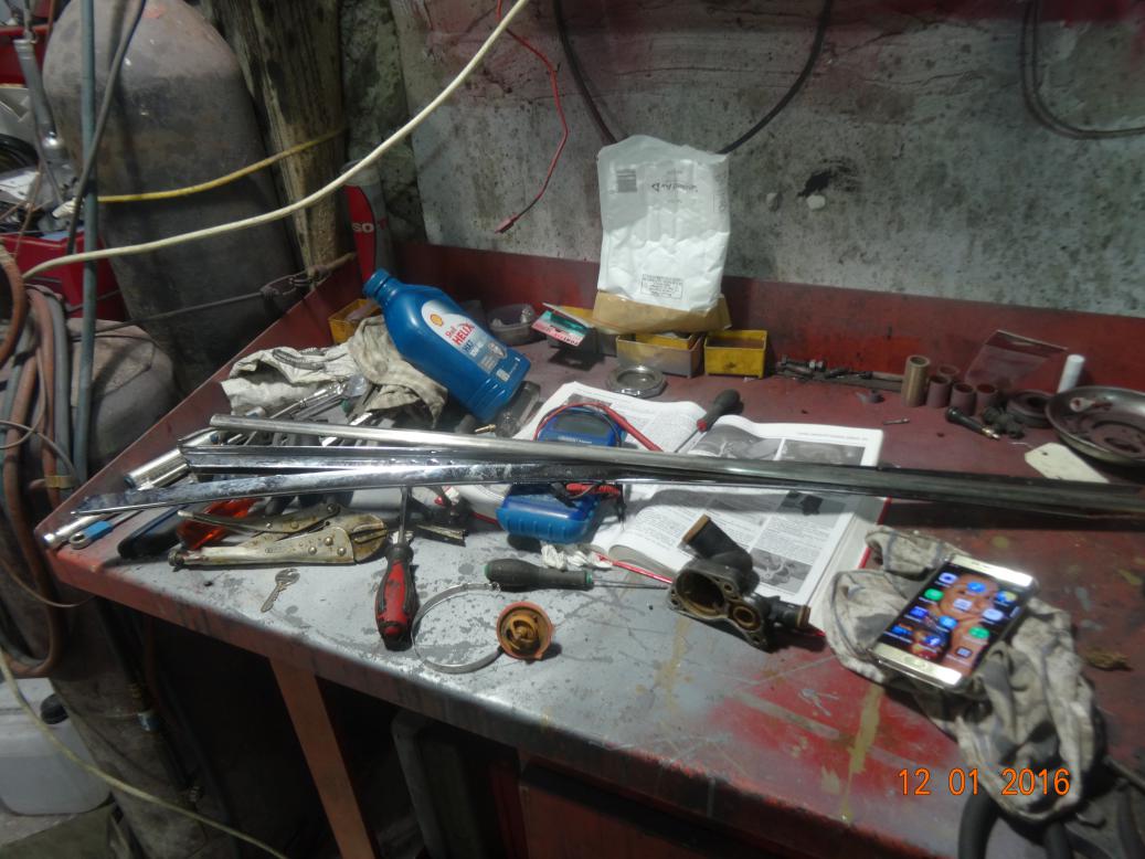 I've made an executive decision. I'm leaving it all until later in the week. It's snowing now and just above freezing outside. The only job that needs doing before I can do the planned work on the chassis is to refit the centre rod to the handbrake, I can do that in the house (if I can find the bits!). Now, I have a confession to make. I left the bathroom trap runiing this morning. The sink is an old slate jobbie with no overflow. I've wiped most of the water up which has run off the ceiling onto the floor in my room.