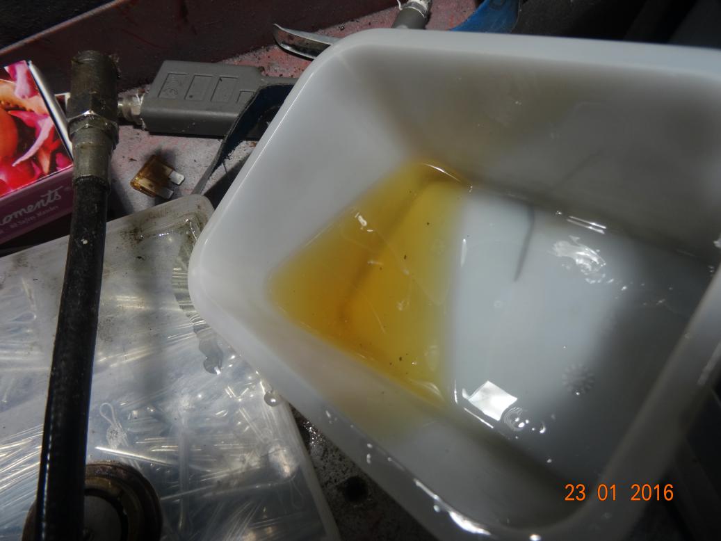 The oil drained from the overfilled gearbox. Hardly worth bothering with.
