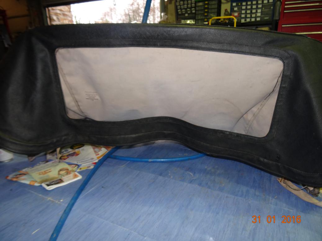 The new window in the hood. It is there, really. He's also replaced all the stitching.