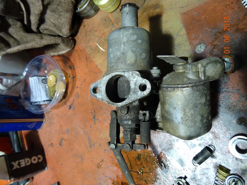 I've spent the day stripping, cleaning and overhauling the carbs. I have finished one but can't find the float bolt to body bolt. I know it's amongst all the parts laid out on the blanket as it was with the float chamber which I took off when removing the engine but I cannot see it. I'll get another (and then find the original). The second carb is stripped and I've left it in a bowl of petrol overnight to loosen the gunge on it,