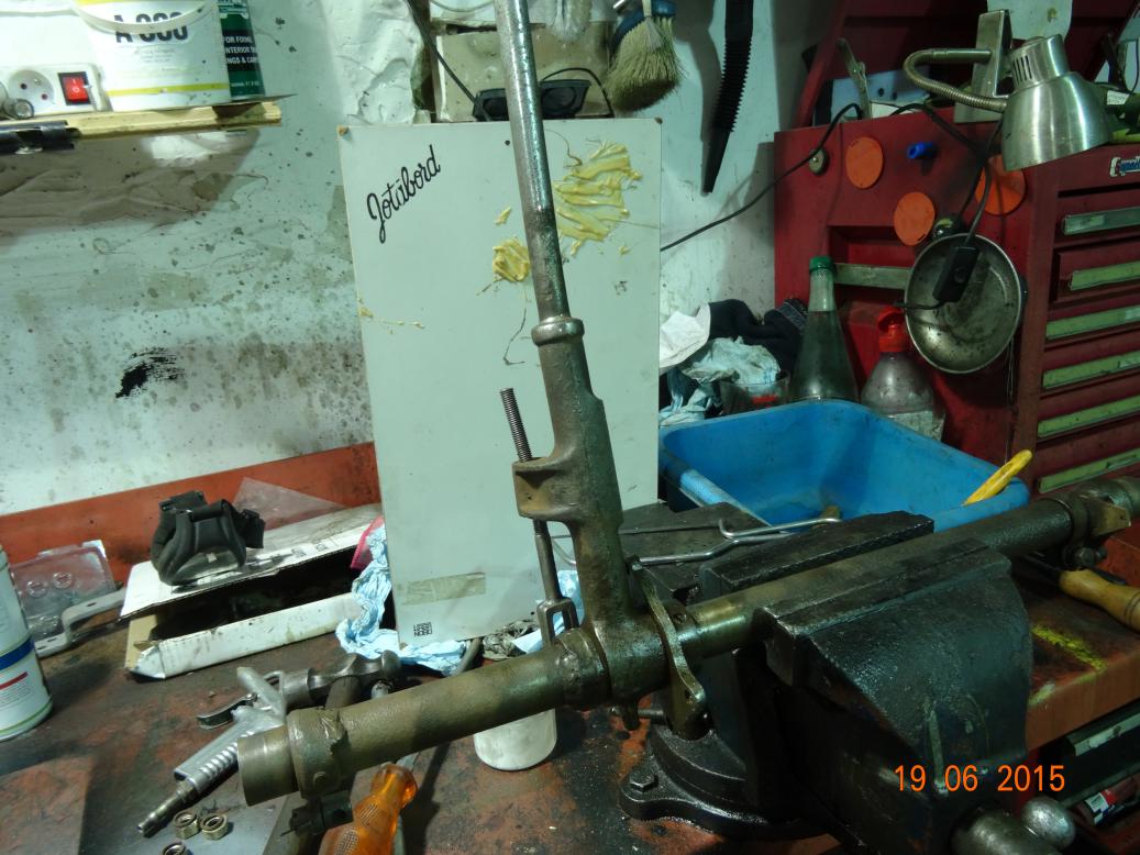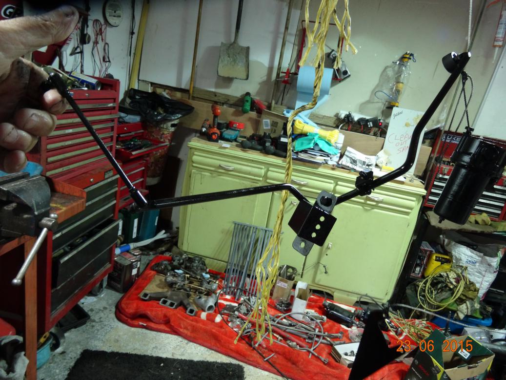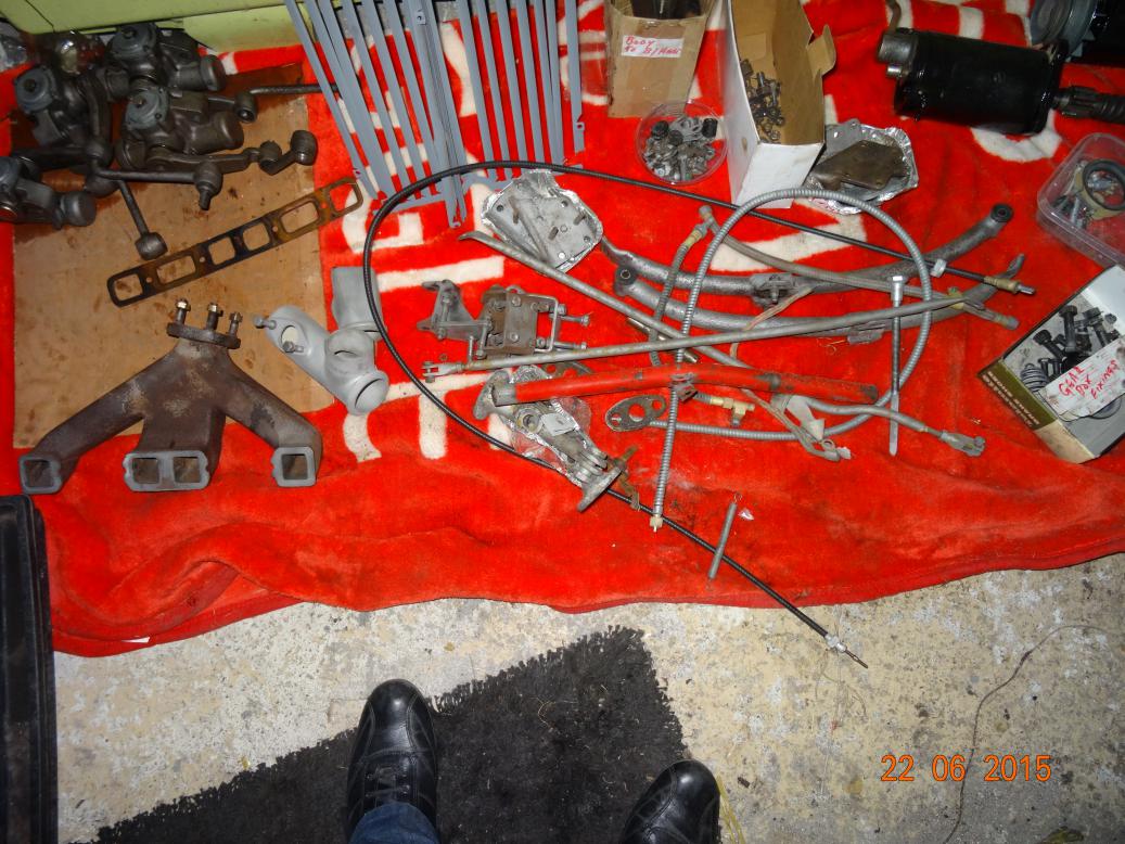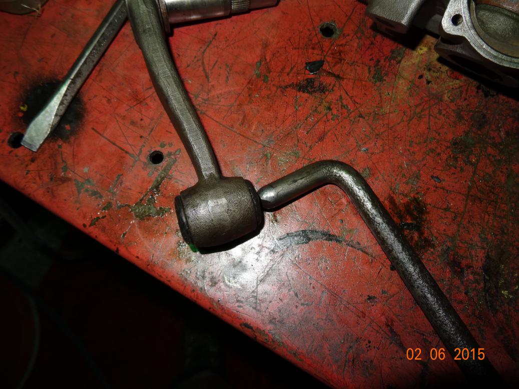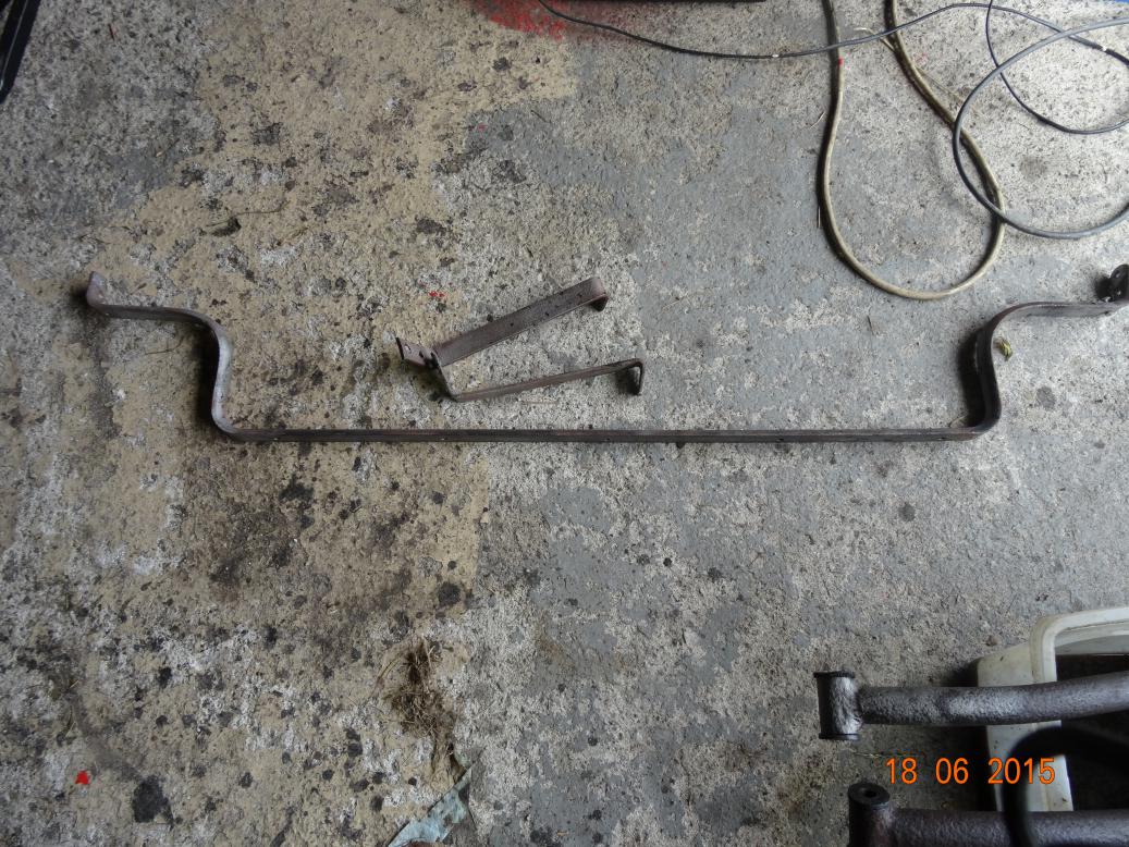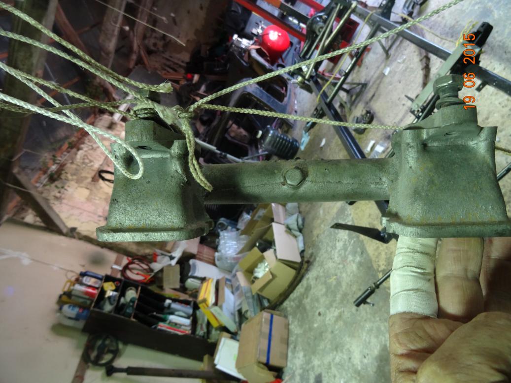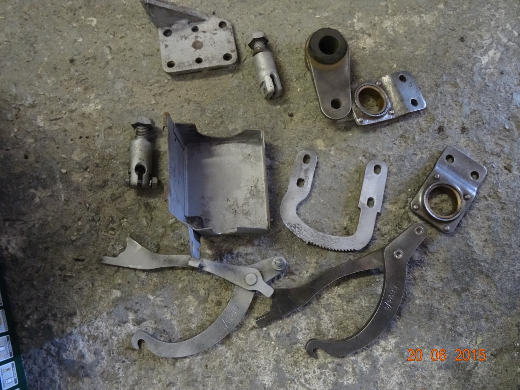 The handbrake assemnly. The two rings at the end of the cross shaft are held in by grub screws so they can be reomoved and the handle slid off the shaft.....