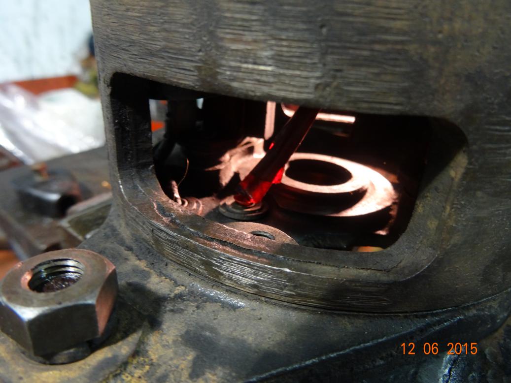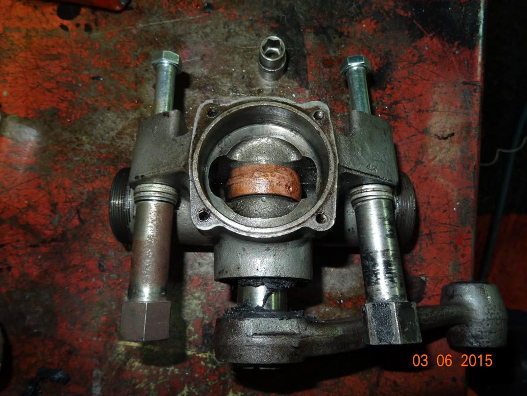 6) Wash everything in petrol and blow off with an air line. Blow through the valve holes in the piston as well as the inside of the body and it's oilways. Remove the old rubber seal around the centre spindle.