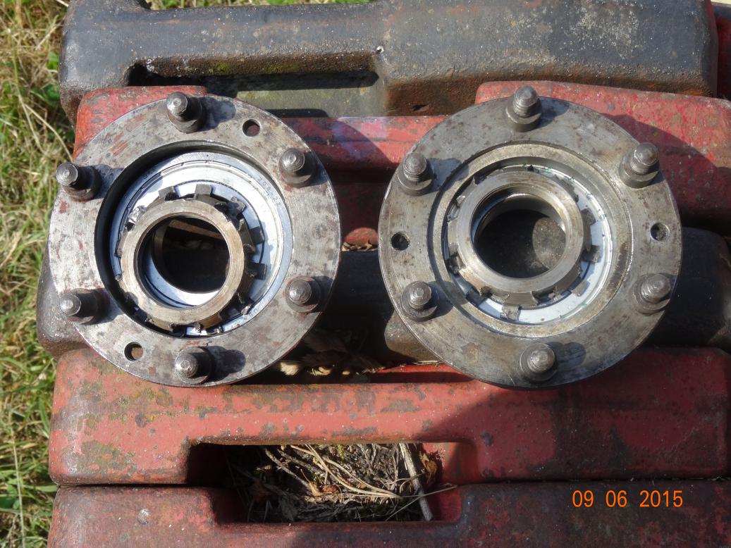 Both hubs with the lock rings and nuts. By the way, if you're wondering what they're resting on, it's the weights on the front of the tractor.