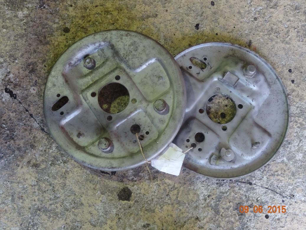 First job is to swap the rear backplates over. Can't do any sandblasting as it's still raining so may strip the dynamo and starter. I'll also sort the hubs out so I get them on the right sides. Useful!
