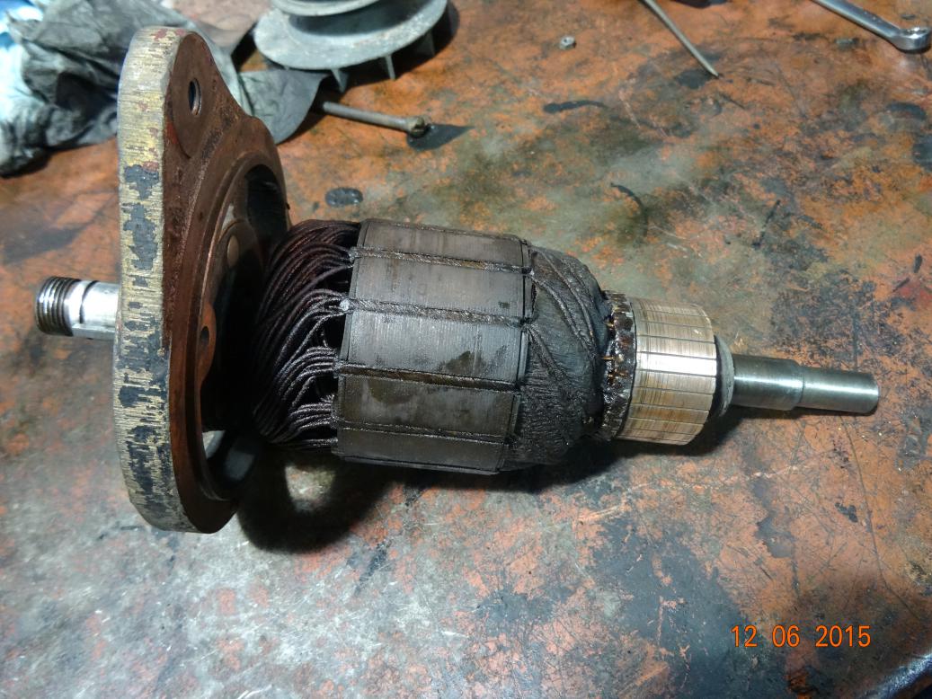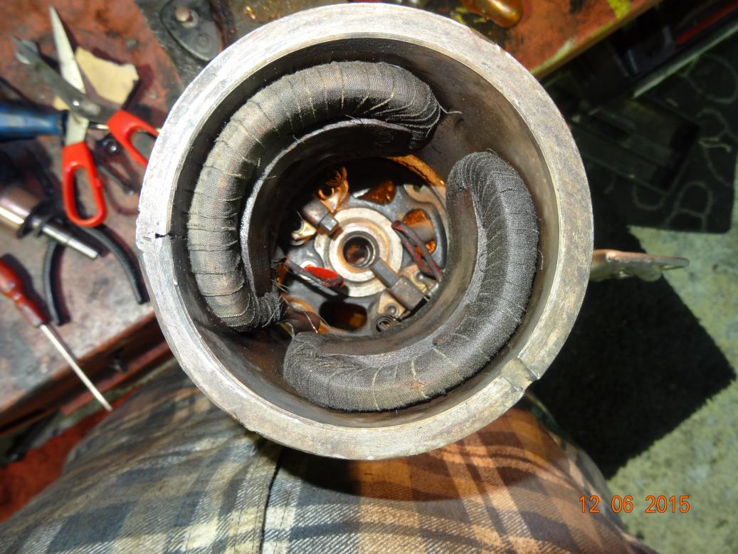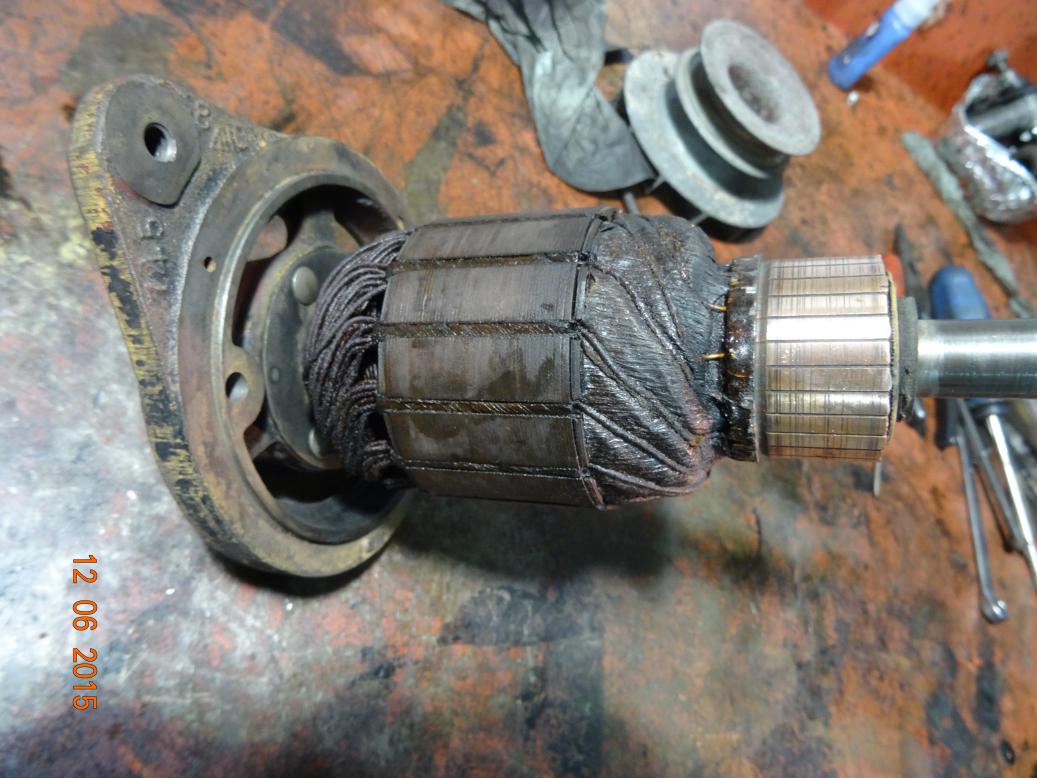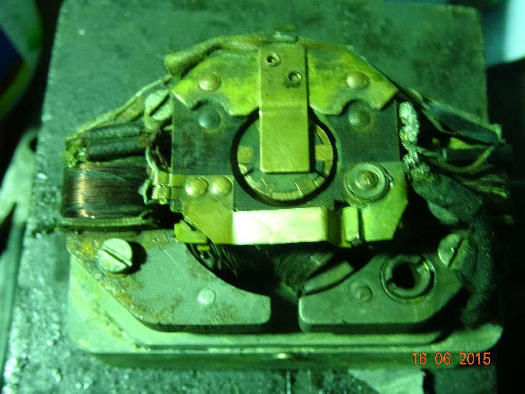 The power went off again after I'd been in the workshop for an hour. This time it wouldn't stay on. I came in a rang them on my mobile. No, they couldn't help I had to ring the "Depanage", the emergency number. I did and they couldn't help because I'd not had a croissant for breakfast, or something. After several phone calls I found a sweet young girl who not only spoke a bit of English but also called an engineer. I went outside and managed to get it to stay on. We had lunch whilst it was still on. After lunch I went back to work. I sorted all the hubs and brakes and bits into each corner with the correct spinners as a guide. I'd already swapped the backplates before the power went off. I then dismantled the dynamo and cleaned and rebuilt it. The tacho drive gearbox (on the back of the dynamo) was seized so I left it soaking in petrol and when the dried grease had been washed away by the petrol I removed the grease nipple and filled it with oil. It's much better now. I had to wrap some insulating tape around the main feed wire inside the dynamo but other than that it appears fine. I cleaned the armature and the the face of the brushes and rebuilt it.