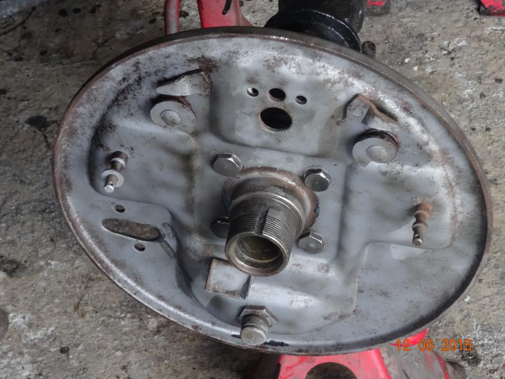 A backplate bolted to the axle casing. For the second trime. I bolted them on last night but forgot to apply jointing compound (aka goo) the the mating surfaces. So first thing the following morning I took it off (after turning the axle around to make it easier and keep clean- me, not the casing) goo'd it and refitted. (you may have noticed the date of the photo)
